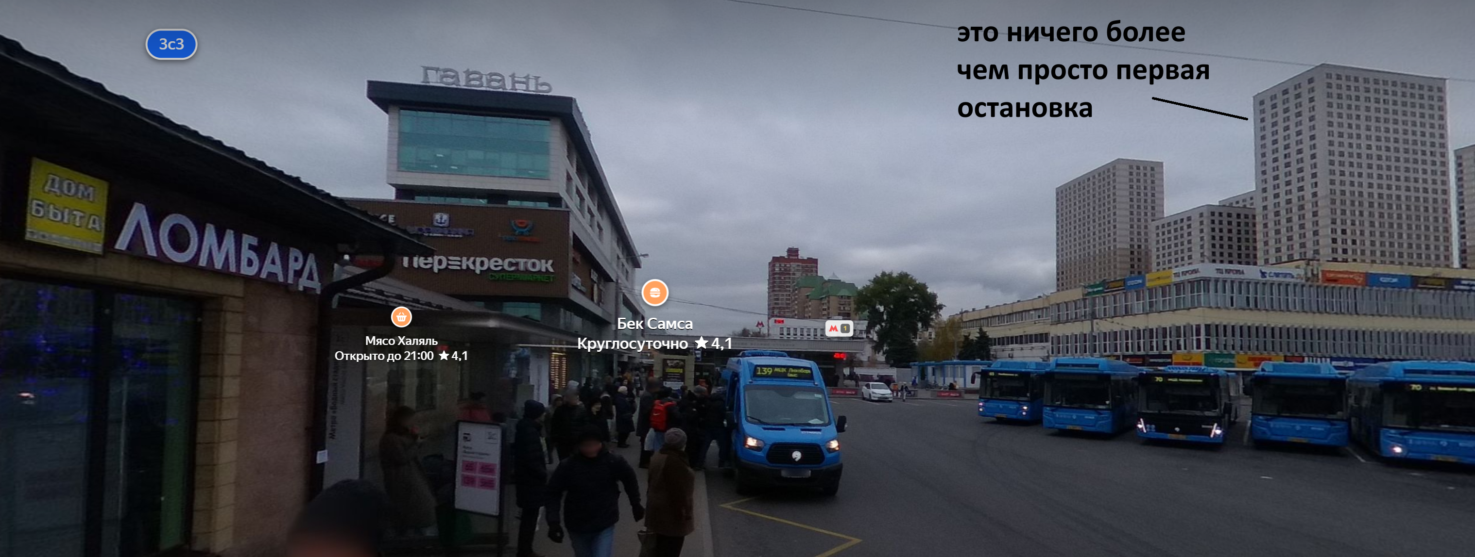 >>329095 ты дебил просто не можешь нагуглить где находится остановка для пригорода она находится вообще не там где ты обвел поэтому это ничего более чем просто первая остановка >И с неё в синие городские автобусы и в метро утром будут толпы из пердей. А вечером - обратно в пердя. это даже разные выходы из метро а так ничем не отличается от любой другой остановки рядом с метро