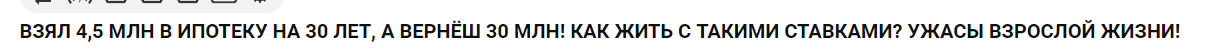Сейчас ипота реально берется на около 25 лет и люди реально будут столько платить. Все эти московские ИТ господа, кто сумел урвать вкуснейшие варианты под 5% будут 30 лет ярмо тащить. Даже если их зп станет в 2 раза больше, лол. Тут только на гиперок надеяться остается, но его будут до последнего всеми силами сдерживать.
