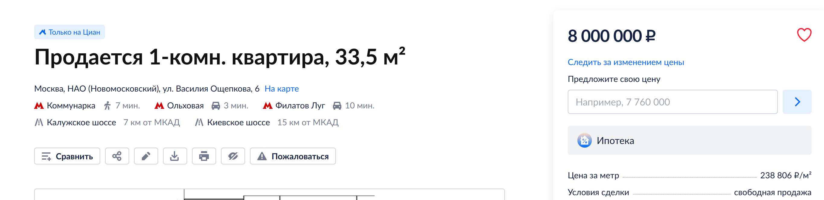 Жил в Москве, 25-этажный дом на проспекте Маршалла Жукова, 31. Буквально 100 м от станции метро «Народное ополчение» БКЛ. Сейчас в доме делается капитальный ремонт. Дом больше известен как свеча, необычный дизайн и все такое. Родственник взял там квартирку-однушку. (Просторную и со всеми удобствами) за 12.500.000, еще до СВО… ипотека у него на максимальный срок в 30 лет. Так он мне когда рассказал, что сейчас цена на его квартиру взлетела еще на 5 миллионов… (мы ему реклмеедовали взяять в 2019 за 7.500.000, ибо тогда еще не было ни метро, ничего + район немного другой), но он не жалеет о такой переплате, ибо сейчас еще хуже. Ипотека его душами ужасно. 85.000₽ в месяц отдавать при доходе в 100.000₽ (без премий и тд) - это жестко даже для Москвы.