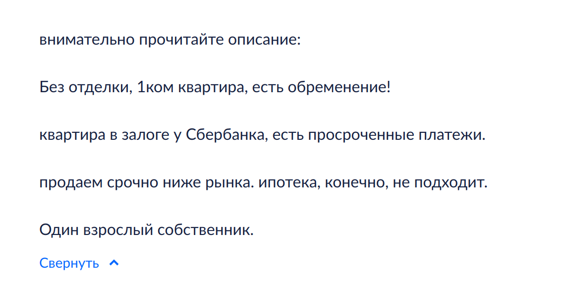 >>329635 До связи, трясун. Читал я десятки случаев перед покупкой. То забыли справки спросить ПНД/НД. То купили у чела-банкрота. То хуй забили на опеку и купили у пиздюка. То отказника не учли. То не обратили внимание на бывших жен. То купили по липовой доверенности. И прочее прочее прочее.