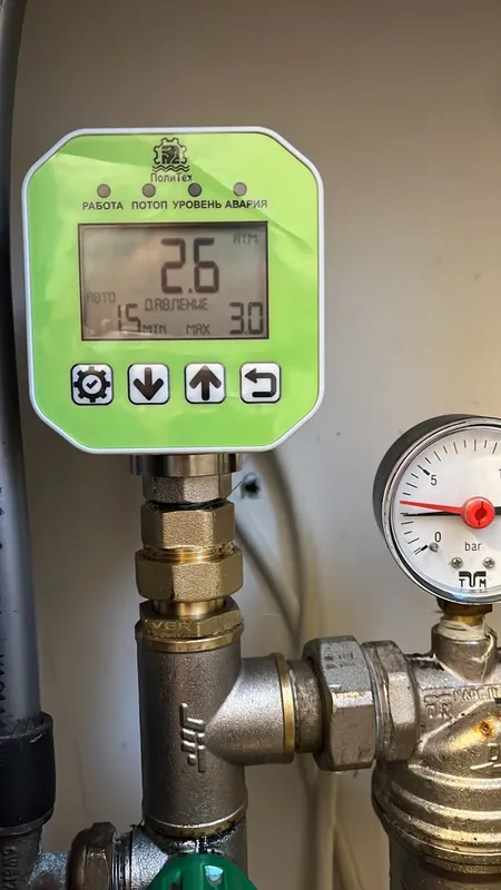 3 Реле давления ПОЛИТЕХ, в нём уже есть и реле времени и возможность подключение датчика протечки и прочие штуки.