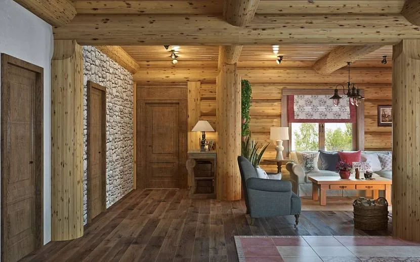 Деревянные избы не противоречат современному кирпичу-соломе, и то и то русский стиль, но разных эпох.