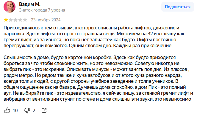 >>354111 А что лучше, какие альтернативы есть в таком же ценовом диапазоне да еще и возле ТТК? Ну и как минимум это лучше ПИКовейника с картонными стенами. Я был в гостях у друга в зиларте, стены там добротные, как сморкается сосед не слышно.