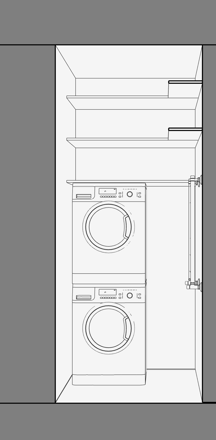 И раз уж мы необязательно рендерим, то сразу возникают еще вопросы. Простенки в кладовой и спальне, например. Стандартный размер шкафа - 600 (550 для необьемных вещей).