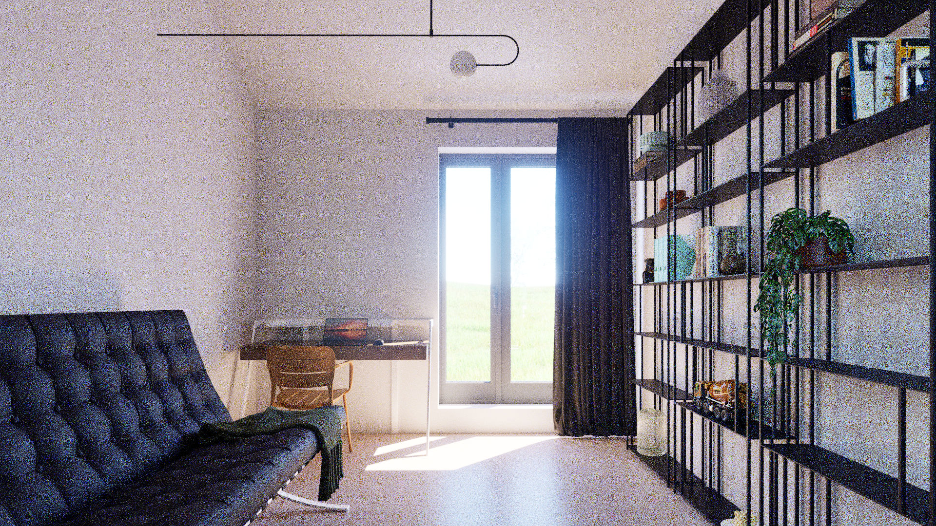 Стена без отделки кстати строго опциональна и легко заменятся на потолок без отделки, либо просто не белый. Но что-то одно из перечисленного будет очень уместно.