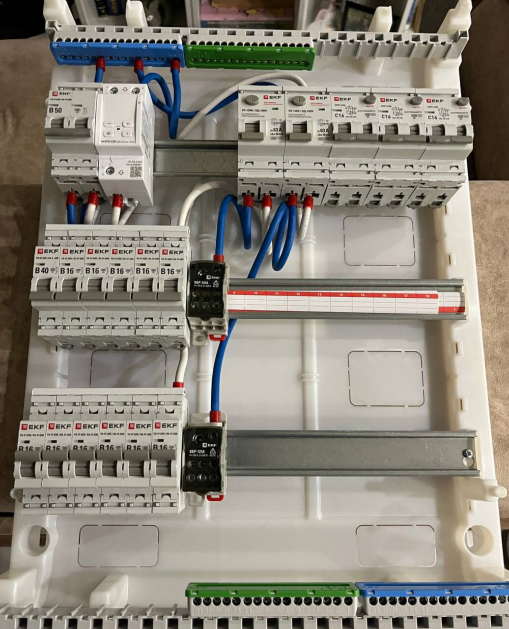 >>366717 >между рейками очень мало Это стандартная хрень 90%+ боксов, особенно накладных. >До этого не замечал, что они не как розетки, не на 16А рассчитаны Если кинешь 2,5 квадрата, то можно и 16А поставить. Если 1,5-ка, то да, 10А самое оптимальное. >одножильным было бы удобнее И да и нет, у него своих подводных навалом. Можно не заморачиваться с НШВИ, он сам держит форму и всё вот это вот, но зато контакт в клемме хуже. И площадь контакта меньше, и держится в большинстве клемм хуже, и обслуживать щиток потом не так удобно. >Реле от welrok неудобное приколом с тремя клемами Оно так только на первый взгляд кажется из-за неочевидности. По факту нужно относится к нему как к обычному однополюсному АВ с одним лишь исключением, что ему нужно каким-то образом вернуть нолик от первой УЗО или от вводного АВ. Хватит даже 1,5-шки, ему чисто для питания самого себя.