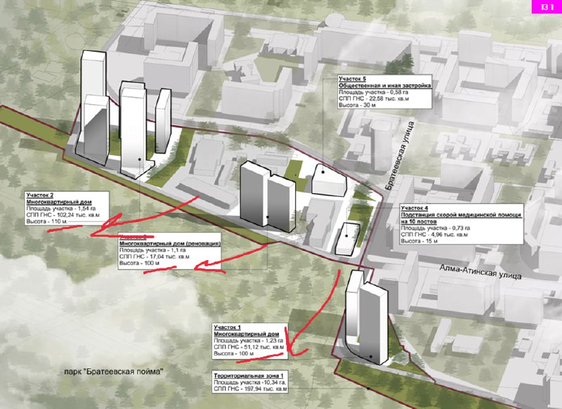 Спальник обрастет вот такими недодоминантами по краям. Вовлекают ЗУ "Братеевская, 39/12", "Братеевская, 24", "Борисовские Пруды, 31" и на Наташинской улице.
