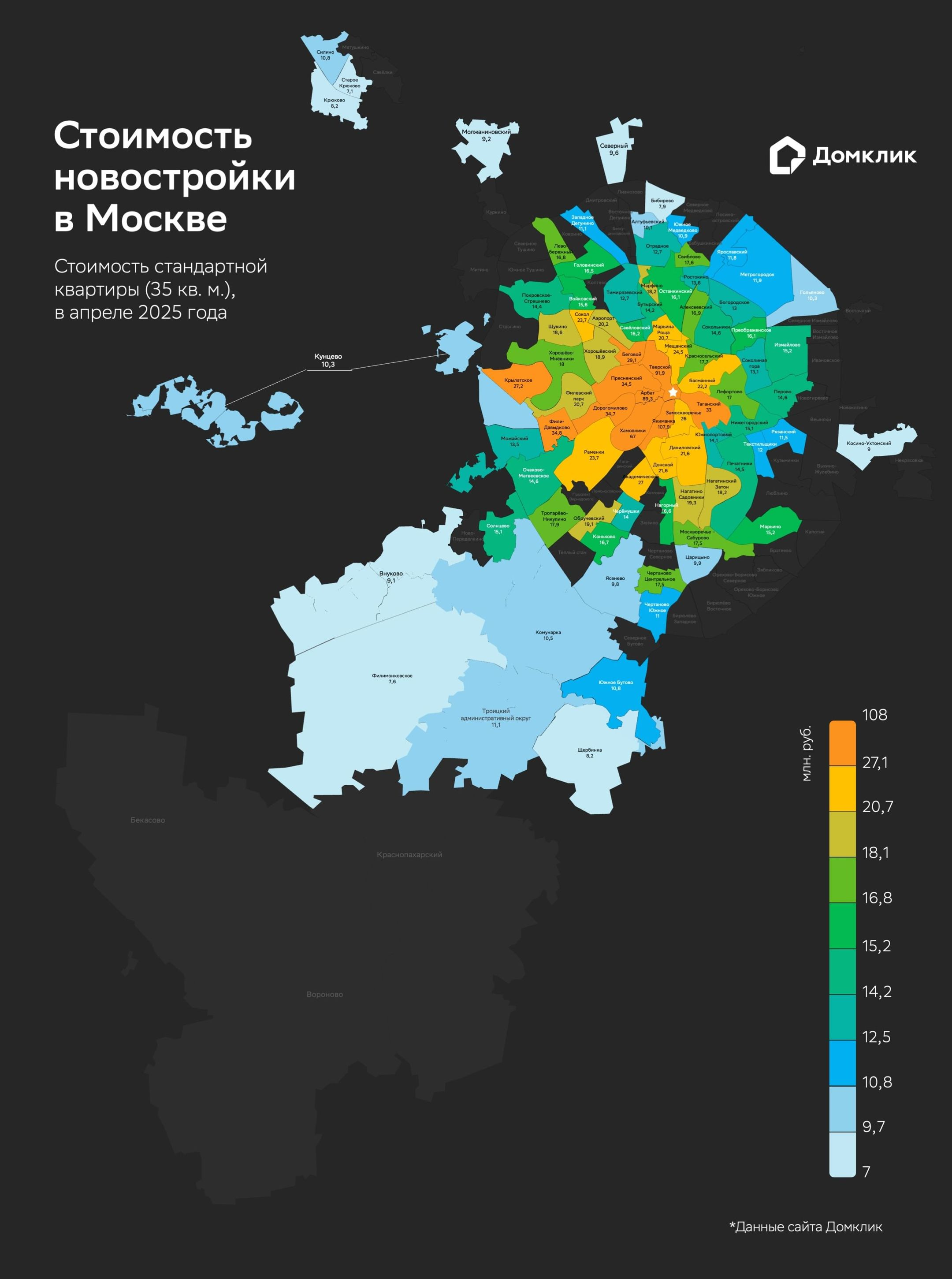 Самая базированная и актуальная карта Москвы. Угадайте, в районах какого цвета селятся уважающие себя господа? Правильный ответ: в тёмно-серых, ведь там вообще не продаются собачьи конуры площадью 35 квадрат, а только квартиры с человеческими площадями.