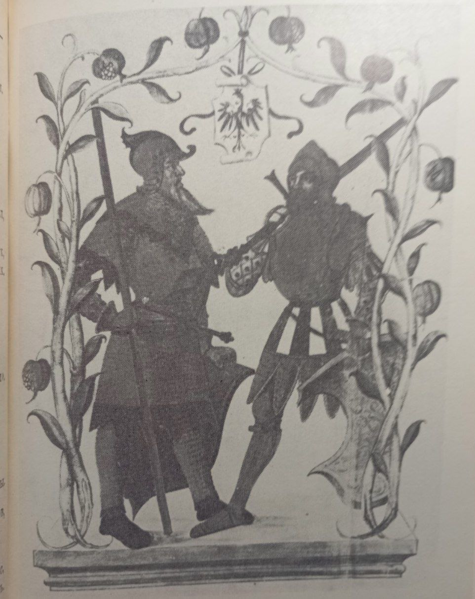 От усталости я оклемался когда мы забрели в совершенно непонятное и непостижимое место с точки зрения нашей земной географии. Я отчетливо видел над собой созвездие Змея и финикийскую Медведицу с нимфой Каллисто. В нашем поясе невозможно увидеть эти звезды над собой. Их перебивало собой изумрудное сияние, свойственное тем широтам. Вокруг же - полярная пустыня. Всюду белые кости каких-то древних чудовищ, драконов или химер, усыпанных пепельным снегом. Мои же спутники каким-то таинственным образом сумели раздобыть теплые одежки из мехов и кожи. Я от усталости сел на одно из предполагаемых ребер мраморного чудовища давно забытого для наших учебников и впервые обратился к путникам. Это были абсолютное знание ситуации и полная уверенность в сказанном, какая заражает лишь боговдохновенных людей или пьяных отщепенцев; и ошибки быть в этом не могло, а повел я речь свою короткую так, хотя, скорее, это была чистая патетика: "Это крайняя точка, дальше уже некуда, да и нас отсюда уже не отпустят, здесь не то место, откуда уходят." Они ропща мне что-то отвечали, дескать, гостя в наше время все еще чтут, а это уже закон, который хоть и неписанный, но его нарушение грозит всем. Другая же половина слов была скрадена одиноким полярным ветром. После они указали на небольшую гору, вернее, на курган, в скале которого были выдолблены ворота, в середине которых виднелся череп рогатой скотины, там, где должны были быть ручки. Я медленно, отставая, двинулся за ними, пока не подоспел к тем воротам. Они уже во всю стучали и с кем-то успели обмолвиться, чтобы нас впустили. Ржавая железная дверь раскрылась и мы вошли в совершенно темный и пустой коридор, пройдя по которому чуть далее мы наткнулись на следующую уже деревянную дверь. Мы ее отварили и увидели просторное темное помещение, напоминавшее кабаре. В нем светили огни свечей, но были они вовсе не обычные, а цвета того сияния, что было снаружи, из-за чего весь кабак был освещен тускло-зеленым цветом. Та часть, центральная, на которую выходила стойка бара, была заставлена столами и окаймлялась деревянной огородкой, верхняя часть которой состояла из крестовидных перекладин, напоминавших фахверковую конструкцию средневековых домов. На этих крестах вился виноград. За столами же сидели люди, но движения у всех них были совершенно неестественно ломанными, двигали головами и руками они так же, как трясутся эпилептики в припадочном приступе. На нас же никто не обращал внимания, пока к нам не пришел местный констебль весь в драных лохмотьях, с серой кожей, с впадинами на лице и обвисшей кожей. Это был старик с длинной седой шевелюрой, лица которого я не смог запомнить, да и было ли оно - трудно сказать. Он деликатно держал руки за спиной и слегка поклонившись пригласил нас в подсобное помещение. "Сейчас-сейчас, да-да, вас уже ждут." -- Промямлил он нам, погоняя. Он резко снялся с места и пошел быстрым шагом в коридор, оторвавшись от нас. Далее, мы шли за ним теми же темными кулуарами с синеватым освещением, пока не очутились в дальней комнате. Там нас встретил человек, сидящий за бюро, справа от него горела свеча уже цвета солнца, а в руке он держал изострое перо и вырисовывал что-то на небольшом листке, периодически отвлекаясь на записную книжицу. Он был гладко обрит, а, опираясь о рукоять его стула, лежал наклоненный клеймор, сам же 