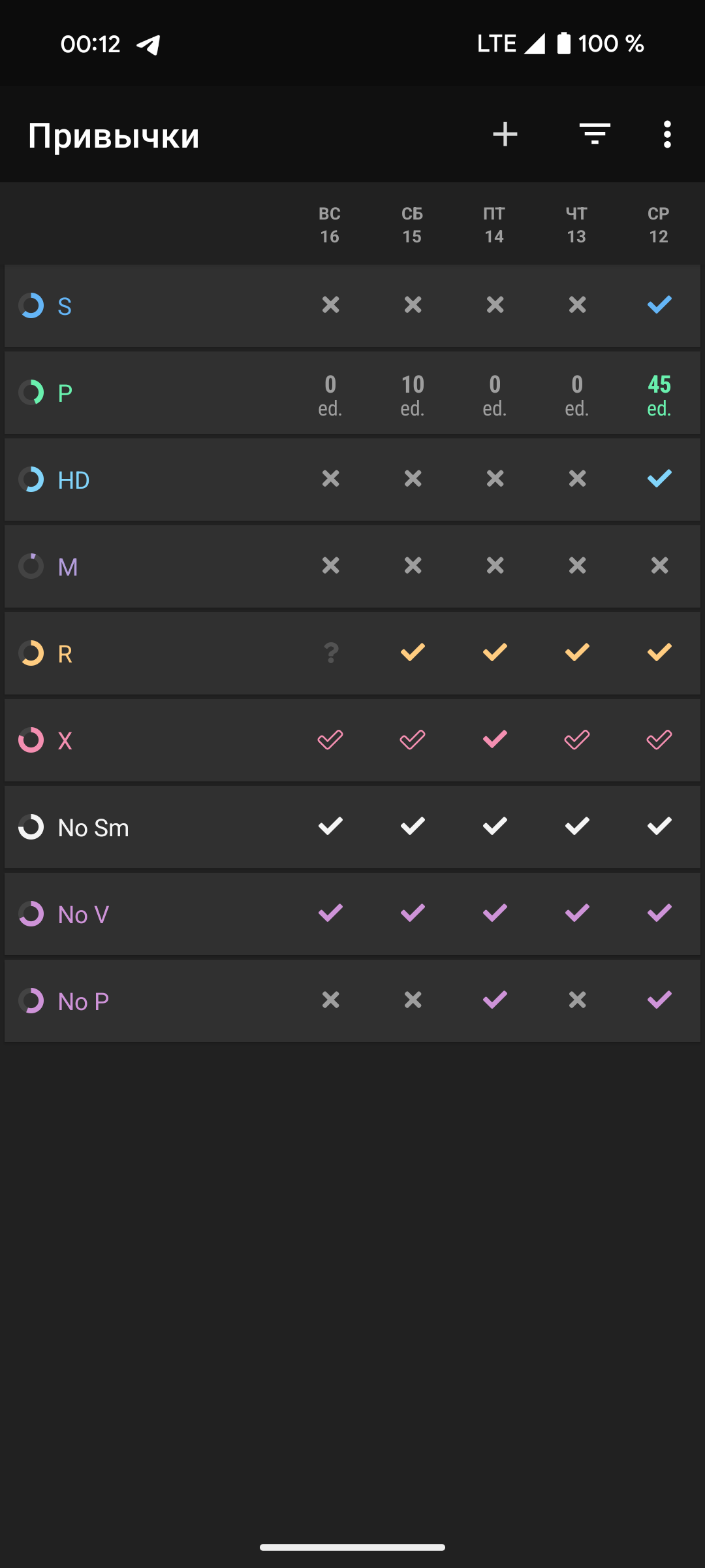 Названия привычек завуалировал чтобы если кто то спалит у меня их в телефоне не кринжанул с меня.