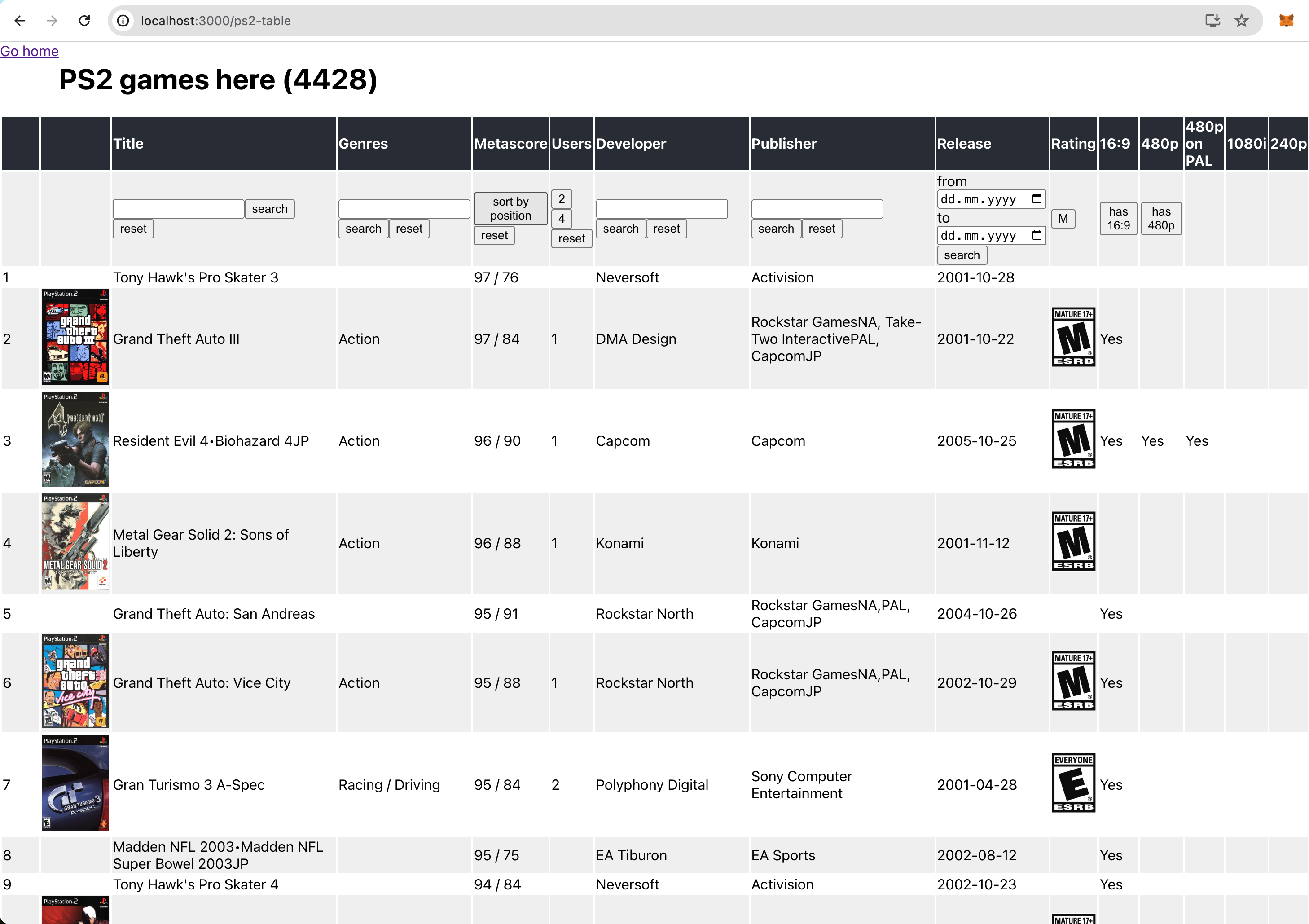 Сделал себе небольшой сервис помощник в котором можно удобно копаться в библиотеке тех платформ, которые мне интересны. PS2 у меня давно, поэтому по ней больше данных и больше фильтров реализовано.