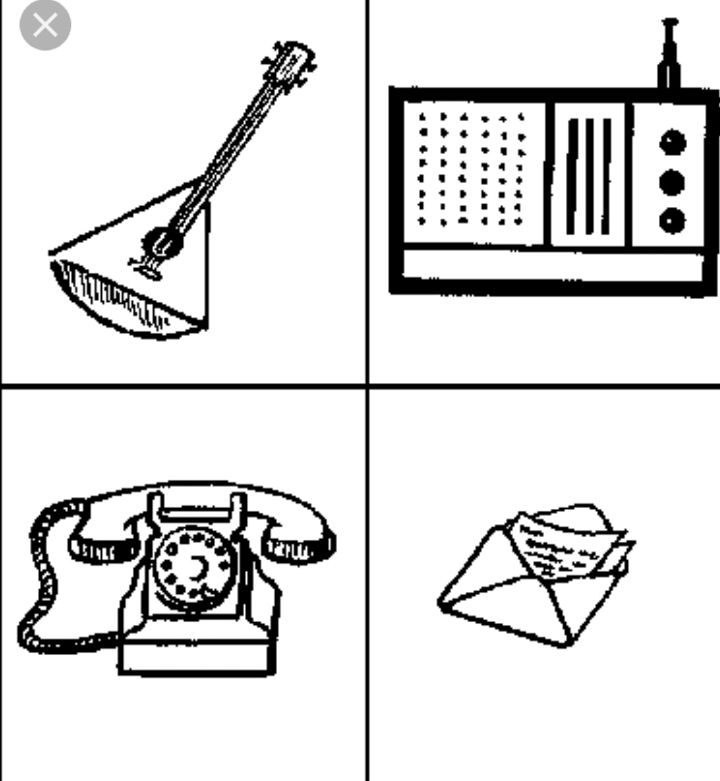 3) А вот тут два стула вижу. Либо ассоциация с звуком (балалайка, радиоприёмник, телефон) - тогда лишнее письмо. Либо ассоциация с информацией (радиоприёмник, телефон, письмо) - тогда лишняя балалайка. Мне сначала пришёл в голову именно последний вариант, поэтому на нём и остановлюсь.