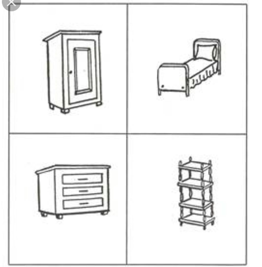 4) Лишняя кровать, потому что остальные 3 вещи (шкаф, комод и полки) служат для хранения на/в них вещей.