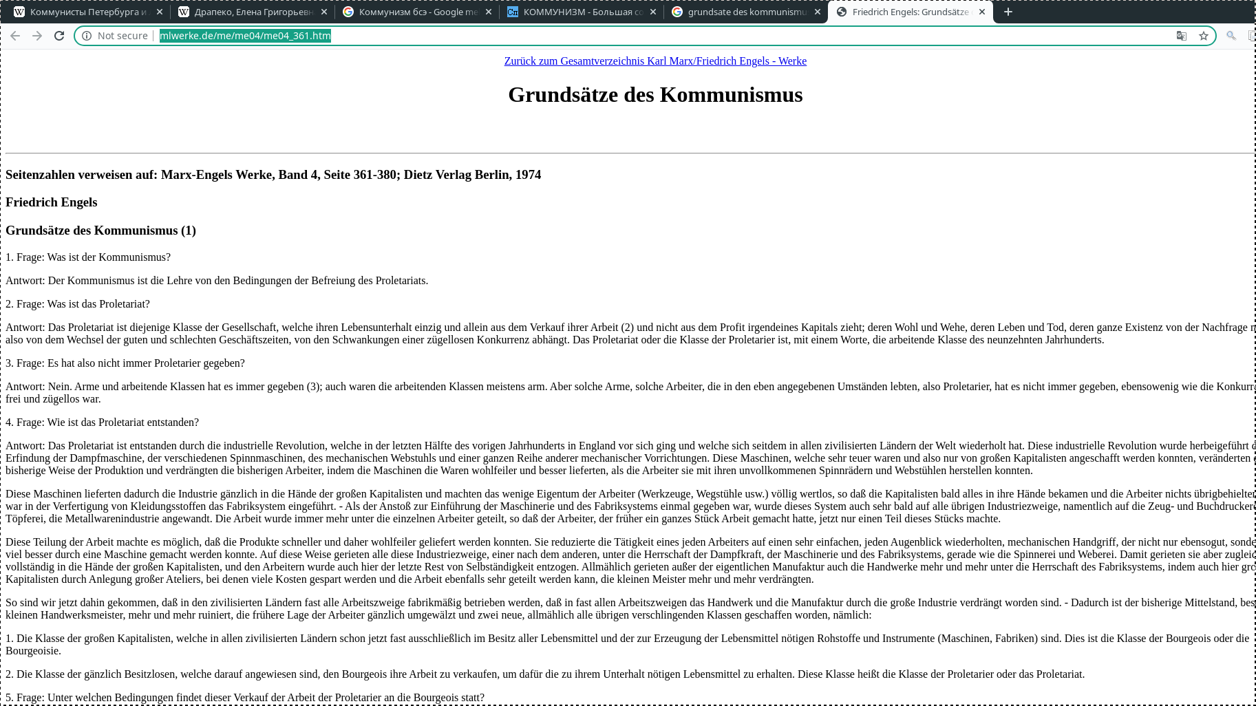 >>338875 > Буржуй ты или пролетарий это определяется тем, как ты относишься к средствам производства. Имеешь частную собственность на средства производства - буржуй, работаешь на буржуя - пролетарий. Это объективная хуйня. Фридрих Энгельс имел противоположные взгляды на то, что такое пролетариат: http://www.mlwerke.de/me/me04/me04_361.htm То есть не двачах определялось, кто пролетарий, а к то буржуй - а это как общественные позиции в некой исторической социально-экономической формации. > То ли ты меня троллишь, то ли я чего-то не понимаю... Да, ты прав. И то, и другое вместе.