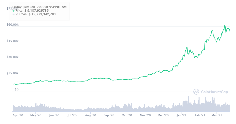 Ну да можно взять любой график выбрать на нем один из минимумов , далее отсчитать 1000% от своего депозита. Можно не только в пример Биток ставить но и кучу акций, валют.