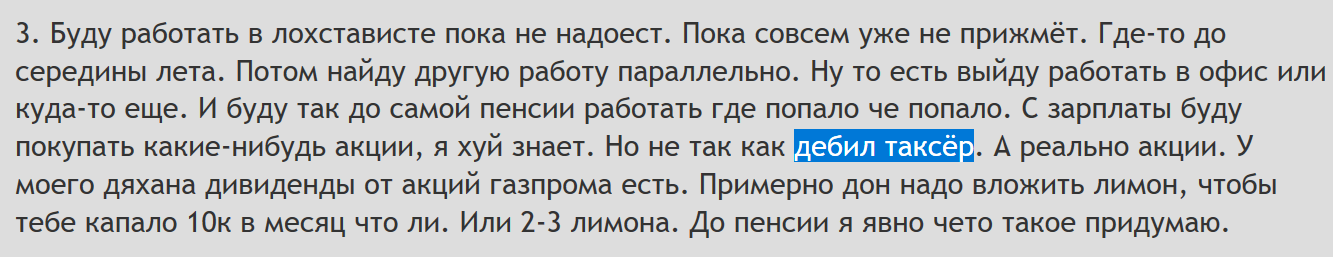 Стоит ли это того, чтобы просто отфильтровать дешевые поездки? Вряд ли. Уперлись как бараны и делают это из принципа, хуй без соли доедая и подвергая себя опасности нападения. А почему? Потому что нихуя не умеют, кроме как крутить баранку.