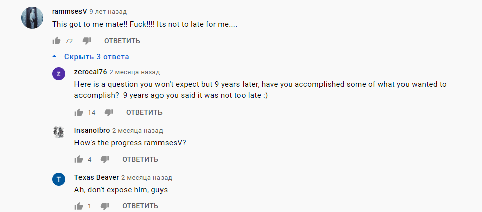 Очень краткая выжимка из последнего треда: - Караулы и поиски уебка с пистолетом ни к чему не привели - Переживаем из-за убитых зубов - Наверное была депрессия - Ковырял C - АЛКО срыв (путевка в Life is Strange на 3 недели) - АЛКО завяз (отдых в Life is Strange заканчивается) - Купил с челом земельный участок на перепродажу - Возобновление тренировок - Поглядываю на крипту (купил немножко)