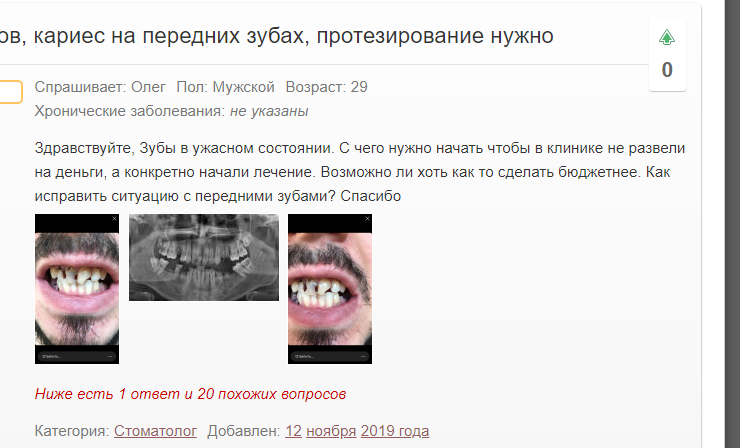 >>580666 А мне посчитали 3-4 коронки на верхние резцы, каждая по 12500, перед этим еще надо зубы подготовить, укрепить стекловолоконными штифтами. 1 резец живой, его в принципе можно оставить, врач говорит что будет чуть отличаться, надо думать. Возможно оставлю его и посмотрю как получится, потом если что переделаю. Ну еще надо будет сверлить челюсть для 2 имплантов. Был у ортодонта, зубов нет давно, но они не разъехались, место для установки есть, прикус почти как по учебнику, если бы резцы были наклонены в перед еще на 1мм. Хирург глянул, вроде и кость норм для установки, но надо еще делать КТ, там будет виден объем костной ткани. Ну и еще 1 коронка на 46 зуб и желательно в 2-3 местах пломбы заменить на коронку, туда можно и из металлокерамики за 7к, хотя про гальванизацию надо почитать еще. Слева снизу где был удален зуб на его место встал зуб мудрости, хоть под наклоном, но функцию выполняет. Благодарен ему за это.