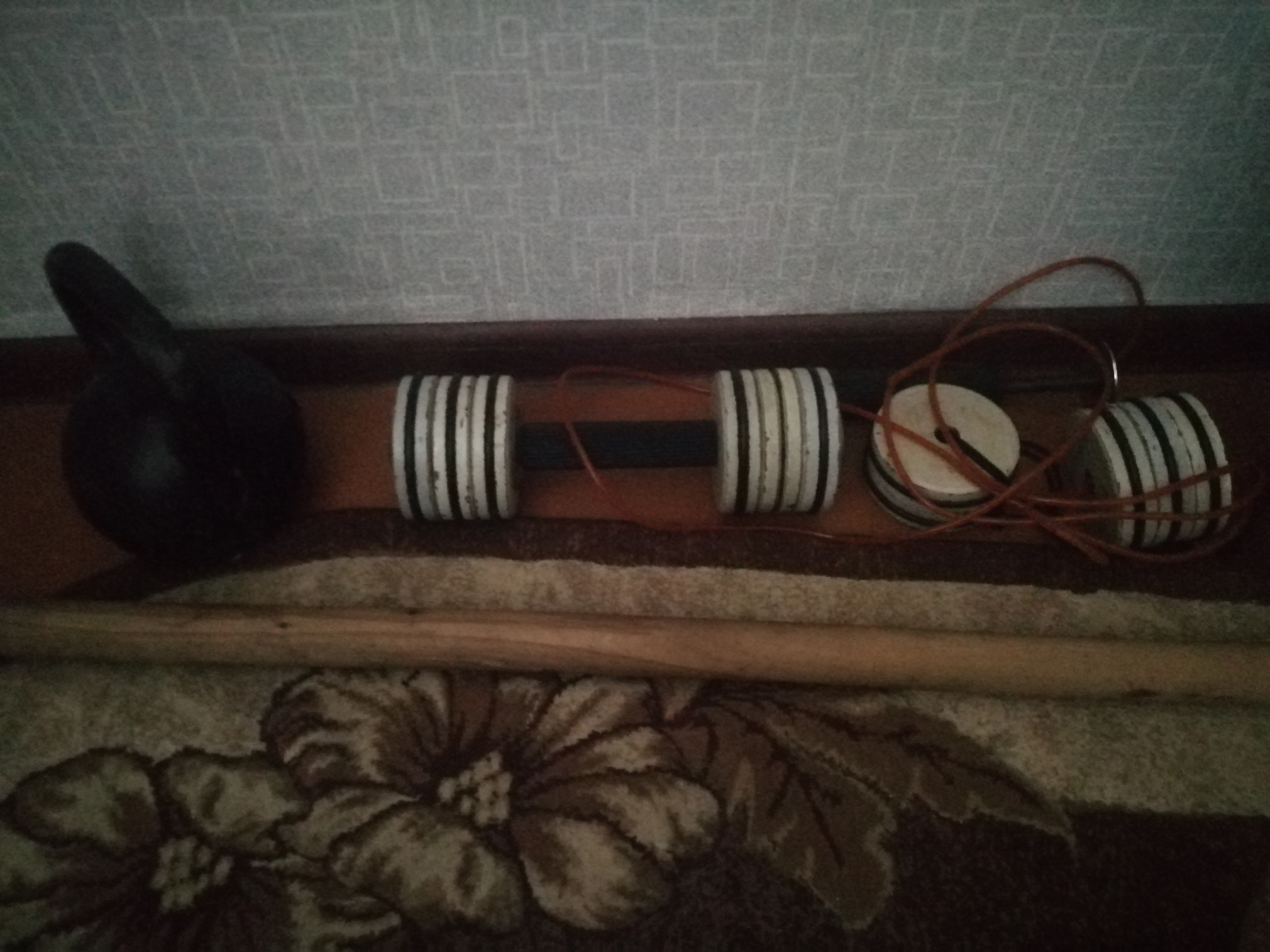 Щас понятное дело на выносливость не могу с гирей, но придумал новые штуки по приколу, веревка от скакалки, палка, к веревке привязываешь блины от гири, обматываешь на палку и закручиванием палки поднимаешь вверх, предплечья жгут что пиздец. Ну приседы на одной ноге, отжимания разными хватами, толчки гири, тяга гири в наклоне, тяга на бицепс, статика, подъем правой ноги лежа, подъем с привязанными утяжелителями и еще куча таких минорных упражнений. Как-то держусь в форме, особо не жирею.