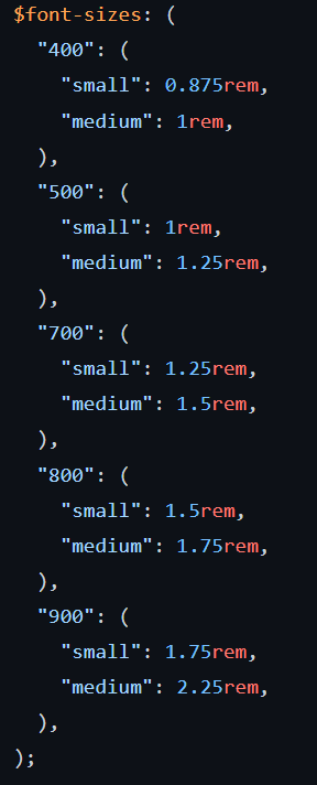 Вроде более-менее вспомнил что-то из SCSS. Сделал такой сетап. Отступы, цвета, брейкпоинты, размеры шрифтов храню в мапах и генерирую из них CSS-свойства, и использовать в коде буду уже их, не сами значения из мап напрямую.