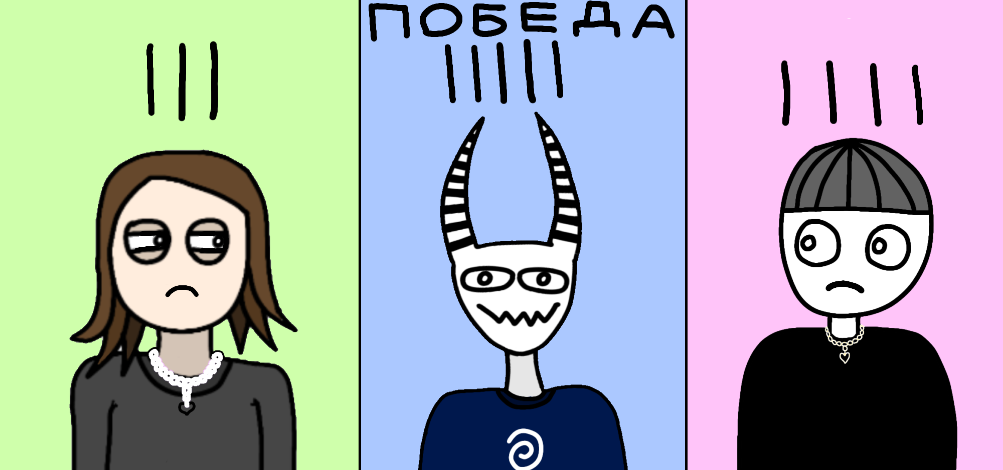 Почти каждый из голосов имеет свой особенный знак, который мы вместе выберем. Влад - сердечко, Людвиг - спираль, Женя - бутылка и самое интересное, Феликс - нарисованный член (просто это была шутка, которая вскоре прижилась и мы оставили этот знак)