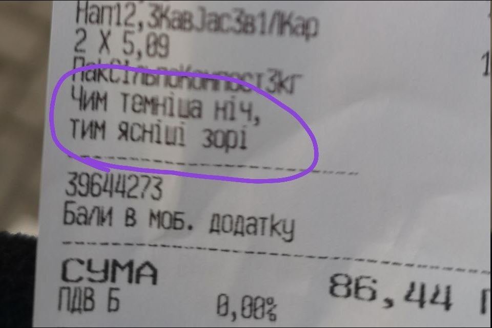 * 1.Про меня вспомнил один из моих заказчиков и попросил помочь сделать строительный акт для фин.аудита его компании. Помог (мне это польстило, т.к. значит никто из его свиты сделать это не смог, а значит мои проф.навыки востребованы) 2.Люблю предсказания в товарных чеках - с укр. Чем темнее ночь, тем ярче звезды
