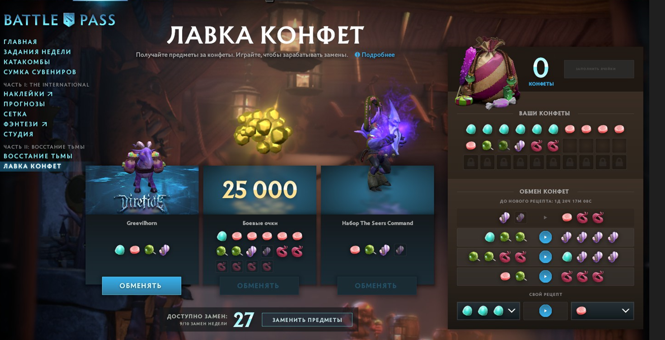 По поводу 25 лвла, я дико затупил с конфетами. Не надо было сразу все ячейки забивать, пришлось совершать невыгодный обмен. В итоге всех махинаций мне выпал еще один редкий иммортальный сет на Бристлпука, его можно будет махнуть на что-нибудь. Поцану взамен тех двух шмоток отдал три аналогичные, которые мне не нужны, а ему пригодятся.