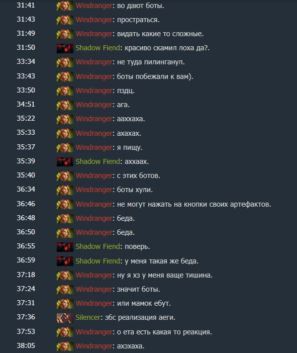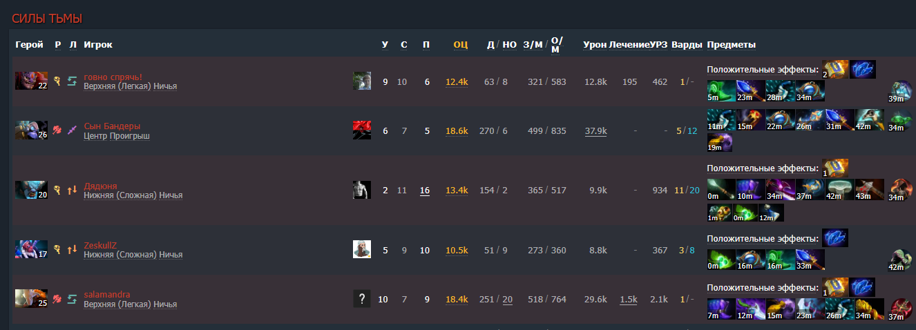 >>651936 > Ну вообще нихуя не понятно Да нет, чел. У них 3 из 5 игроков со временем становятся сильнее и делают слабее нас. Тот же сало за каждый килл получает 2 инты, и соответственно столько же теряет умерший около него соперник. И тут любому понятно, что чем дальше играешь тем меньше шансов на победу. По хорошему таких героев блокать надо, но дауны обычно блокают всякую хуйню типо рики. Да, можно играть аккуратно или быстро пронести до того момента пока пудж не станет мегажирным или сларк/сало не отожрутся и не начнут убивать всё что движется. Но это не про дно ммр. > То есть ты на сапе нихуя вижен не организовал Лол. Каждый сам себе ставит вижн с определённого момента. Я не могу бегать за всеми и не должен вообще то. Если ты сидишь в лесу вместо того чтобы играть, то сам выкручивайся. Ждать что придёт "сап" и жопку подотрёт... > ты на сапе Я этим сапом обычно больше всех киллов делаю, либо пушу на максимум. Чел на вардене хуйнёй страдал с троллем, по факту урона по зданиям почему то у меня больше всех. Мне что то надоело оправдываться. Рад за тебя что у тебя игра получается, а я что-то ебал потеть одному против 5.