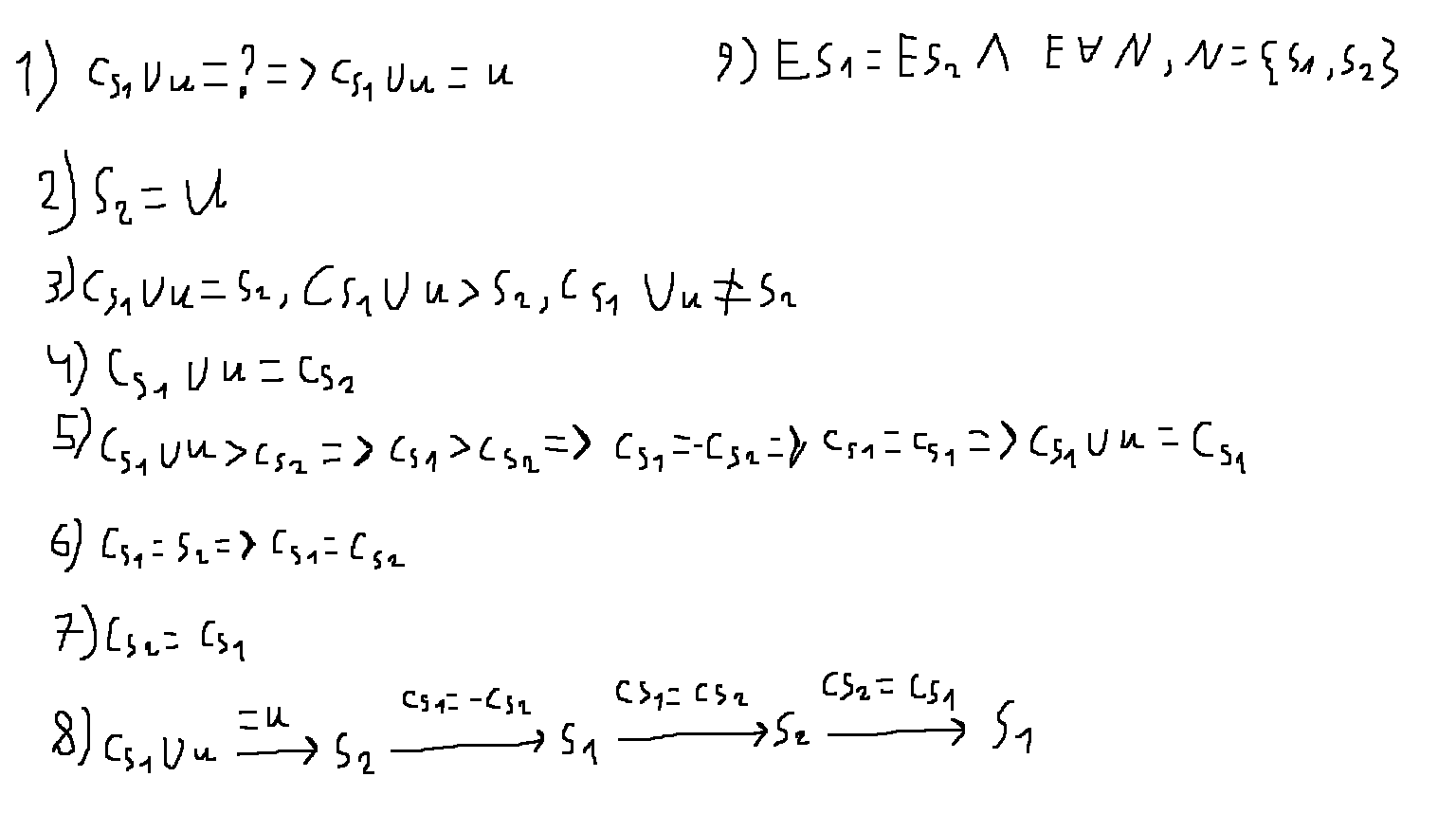 Так, конечно подумал я над компактностью(через мои штуки), и вроде бы няшно всё, только какое применение? Я имею ввиду возьмём (y<->y)->(yy<->yy), за y возьмём числа, при том даже целые. И что собственно? Только если доказывать через именно что познание, ну аля сделать y->y и y<-y, потом взять бесконечное и бесконечное назад. Не, конечно цепь из (y<-y) тут правда бесконечная, но сама цепь здесь не взялась просто так. В таком случае все эти те же покрытия(в нормальном(вашем) смысле) скорее не играют какого-то смысла. Конечно мы можем ставить себе их как задачу, но думаю, хотя... Хотя не, это же вс1 свойства. Другой вопрос в том, насколько эти свойства выводимы из самого некого пути к этим свойствам. Если выводимы, то эти свойства какие-то странные, если нет, то какбы вот.