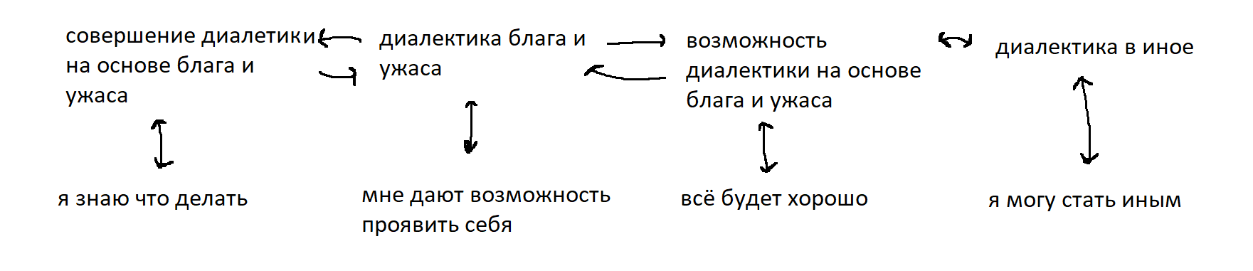 Страшно. Ужасно. Ощущаю смерть. И? Тревога. Хм, просто можно перевести это всё в принятие, но я всё же про тогда... А что если попробовать укреплять себя этим? Не проблема, а еда. Хах, еда! Вспомнил я просто про то, что ужас был мне как еда... Но всё же еда в другом плане. Наверное я знаю как бы это думать->думать бы это в том плане в котором из ужаса просто дистиллировать полезные мне вещи, после чего переводить их в нужные мне активности. Но тогда не обязательно что ужас пропадёт ведь? Тогда нужен дистиллят. Хм. Постоянный такой. Короче ужас должен переводиться, всё так.