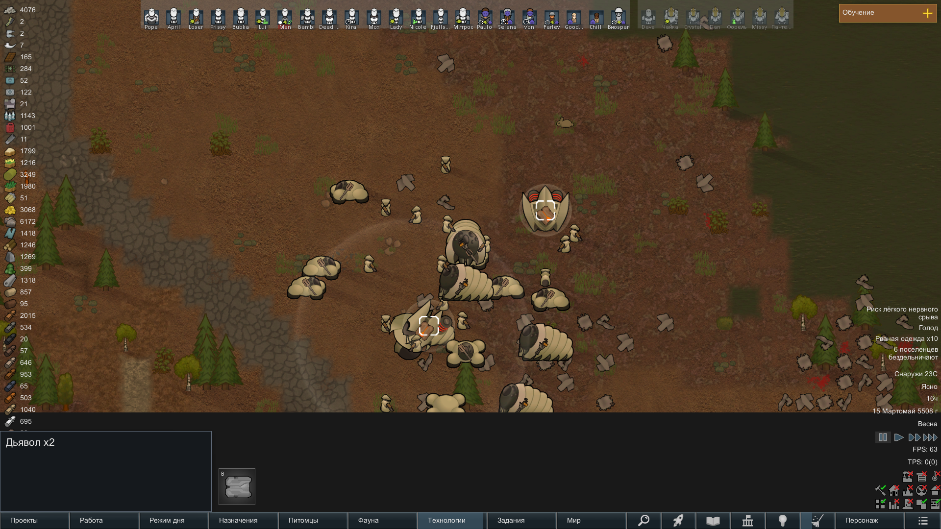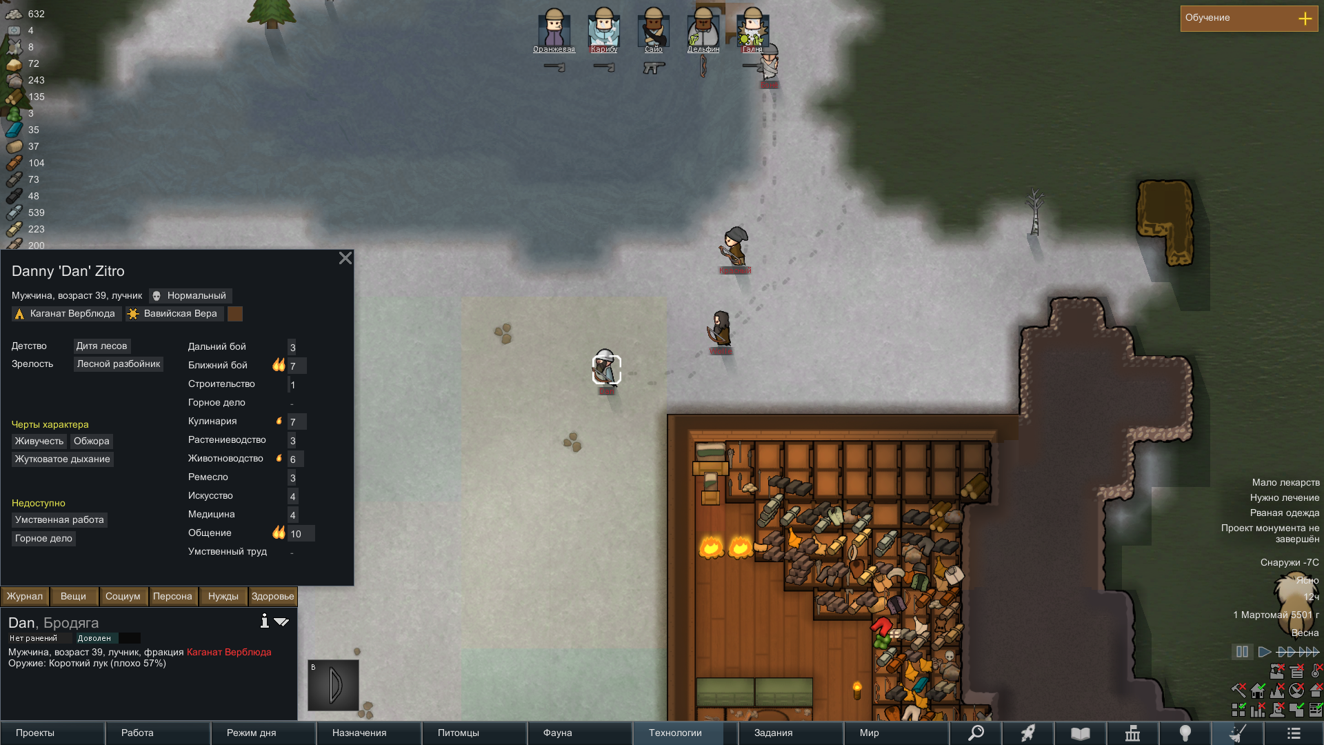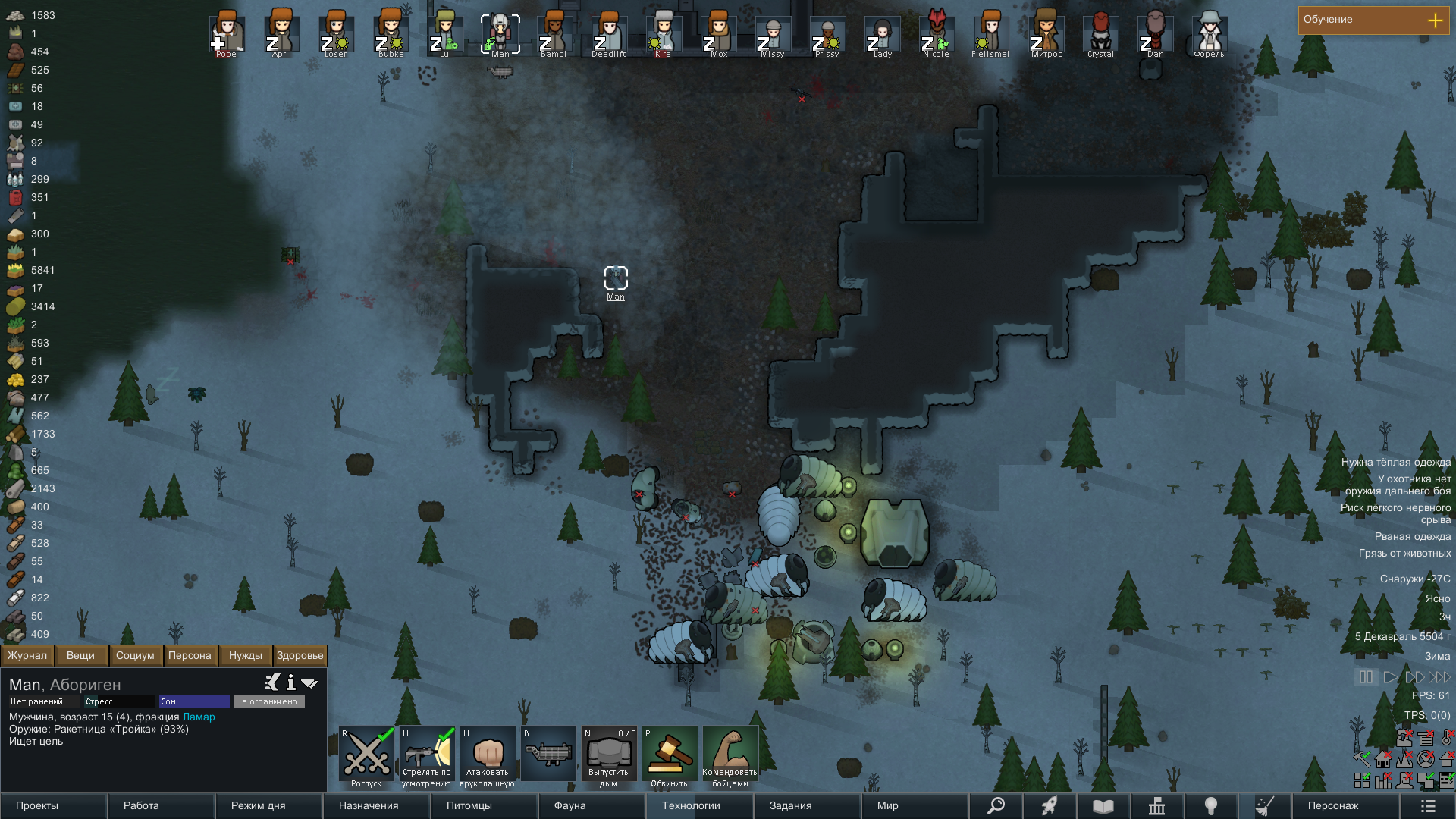 Сделал себе что-то вроде отряда, с двумя охранниками и учеными, с расами Хускарлы - Саванты соответственно. Много, но не чересчур, ресурсов и снаряжение. В принципе неплохо. И первый раз серьезно играть в тропическом лесу.