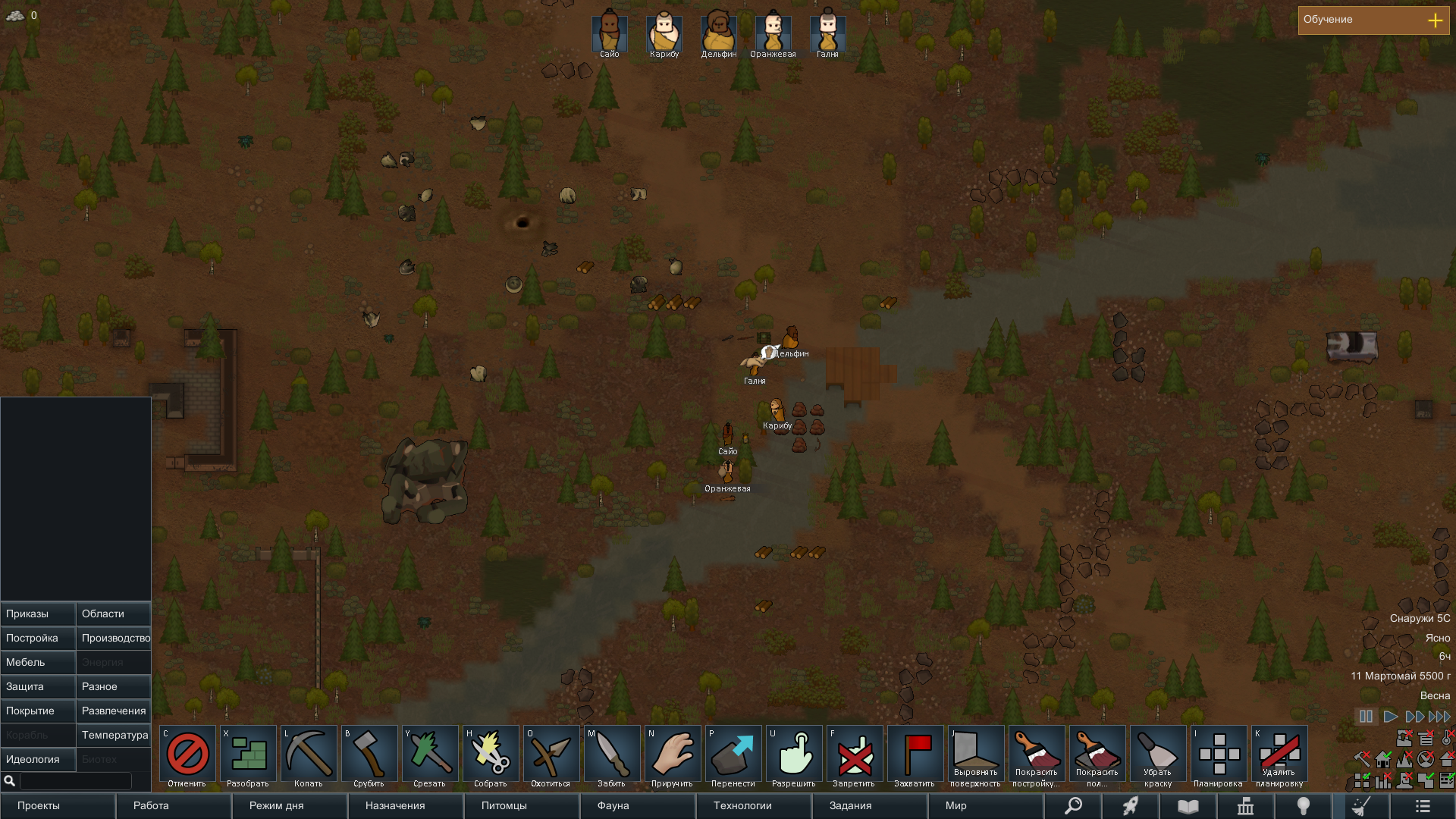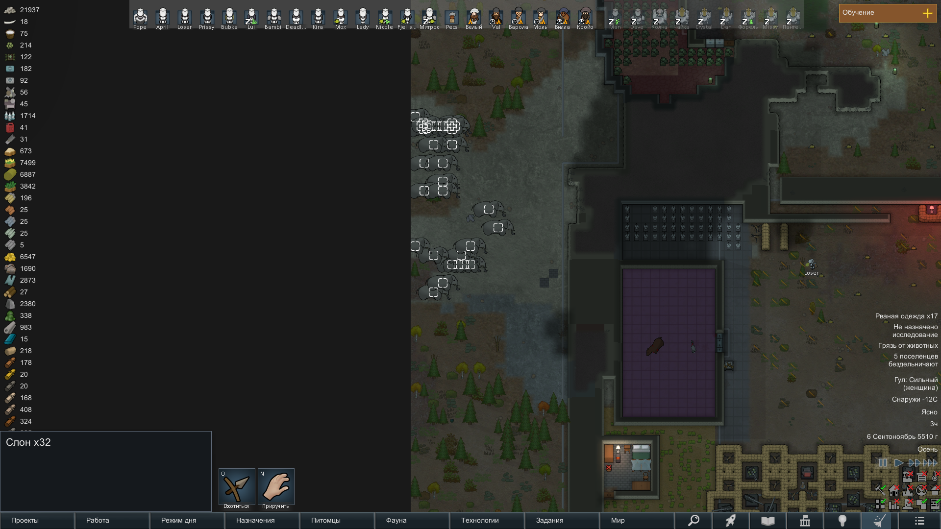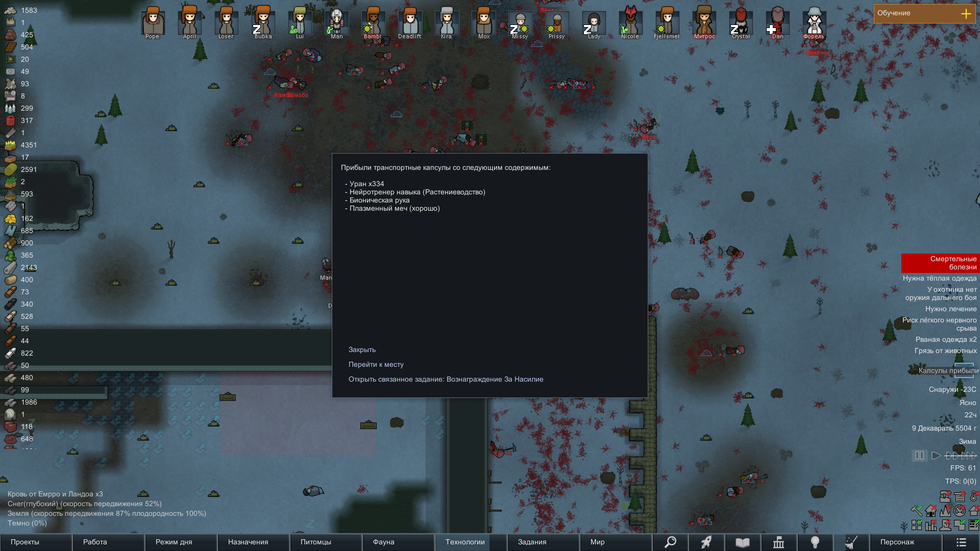 Сделал себе что-то вроде отряда, с двумя охранниками и учеными, с расами Хускарлы - Саванты соответственно. Много, но не чересчур, ресурсов и снаряжение. В принципе неплохо. И первый раз серьезно играть в тропическом лесу.