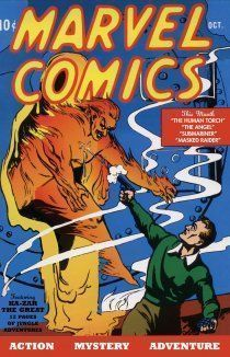 Прочитал переиздание комикса 1939 года,я так понял,самый первый от марвел,что переведён. У меня есть книга про марвел,я оттуда уже знал ориджин Человека-Факела и Нэмора-Подводника. Этот Факел появился задолго до Фантастической Четвёрки и никакого отношения к Джонни Шторму не имеет. Больше всего мне история про Ка-Зара понравилась,трогательно даже. Заметил такую особенность,как более-менее подробное описание картинок,в более поздних комиксах такого нет. Также есть мини-история вообще не в виде комикса. Но перевод.. имена с маленькой буквы,путаницы одел-надел,-ться и -тся,плАвец..я не граммар-наци и не претендую на абсолютную грамотность,но это ПИЗДЕЦ