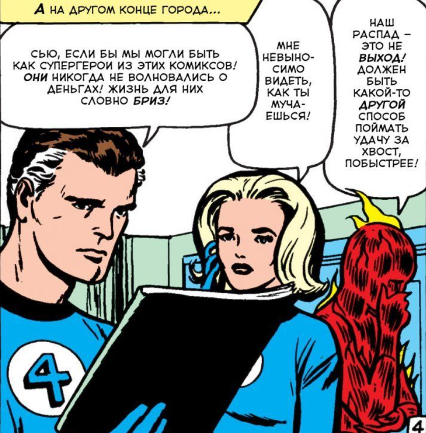 Фантастическая Четвёрка том 1 #9 Тут нестандартная завязка сюжета в том,что у супергероев закончились бабки. На этот счёт есть самоирония пикрелейтед. Нэмор предлагает миллион за съёмки в его фильме и устраивает ловушки каждому из четвёрки. Подводник сделал это ради любви,как он сам сказал. Любви к Сью.
