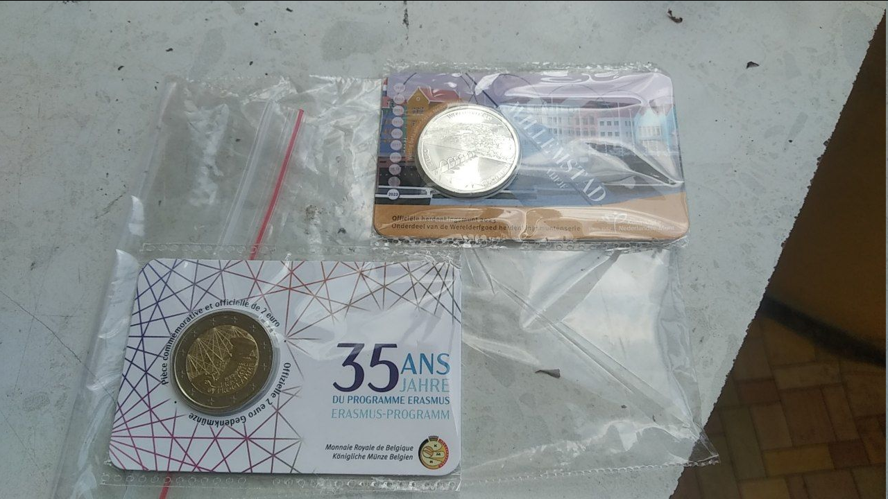 Вон там на фото есть голландская 2-евровая, посвящённая программе Эразмус. Я её купил за 1500 рублей. Её уже сейчас нет дешевле 2200 рублей.
