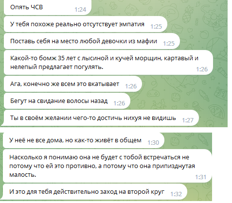Ну и последнее, айтишник (а это второй человек, с кем я достаточно долго знаком, хоть и по интернету, и общался на эту тему) уверен, что у меня получится вкат в айти, если я захочу. На все мои отмазки возражения наашел что ответить.