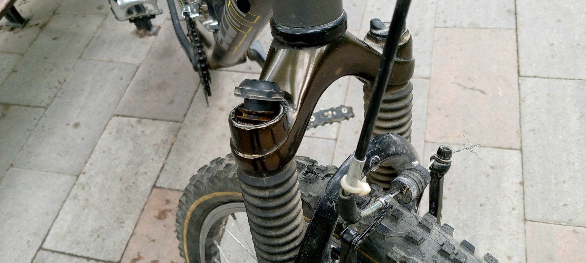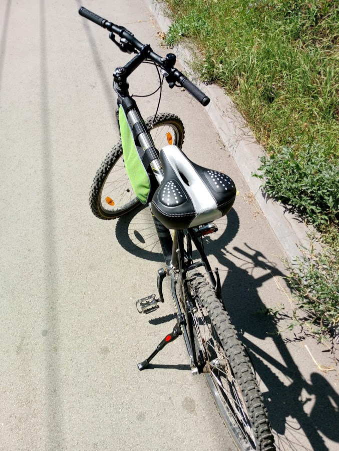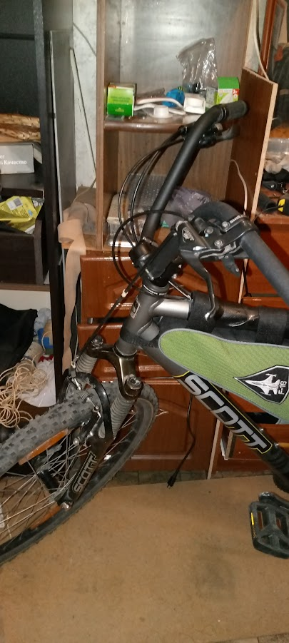 В общем такого хомута в магазине не оказалось. И на рынке не оказалось. Причем там тусуются гречневые мужики, которые всякое добро с заводов и гаражей тащат. Я пока там тусовался, один мужик лет 60и сказал что у меня сидуха хуево стоит и согнулась. Нужно развернуть шток на 180о как он был изначально. Я так сделал, сидушка стала смотреть носом в землю. Дед ее выпрямил. Я ему дал сотку за труды и совет. Потом он смазал тросики тормозов, чтоб они ходили гладко. Пояснил про всякую велосипедную мудрость, показал как надо обслуживать и чистить. Обрезал мохристые концы тросиков и надел на них колпачки. Я ему еще сотку дал. Далее он пояснил где купить солидол, там его не оказалось, продали силиконовую смазку.