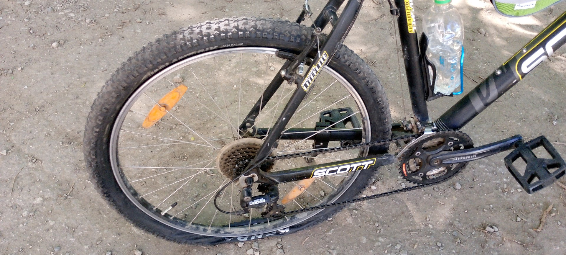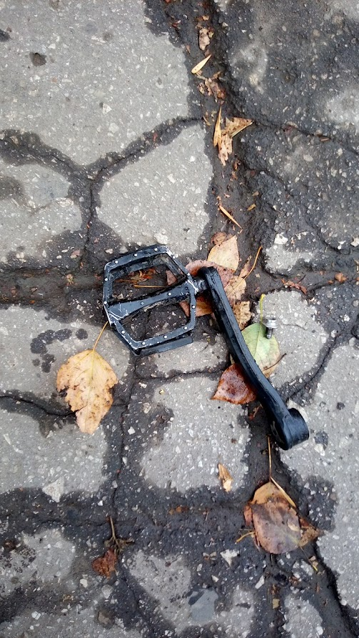 кину шакалам пожрать. педаль нахуй отвалилась на работе. по спуску скатился и доехал до мастерской на одной пидале. потом поперся пешком домой, привез скоттину и с него пересадил шатун и обе педали для симметрии. скоттина в первоначальном виде, кстати