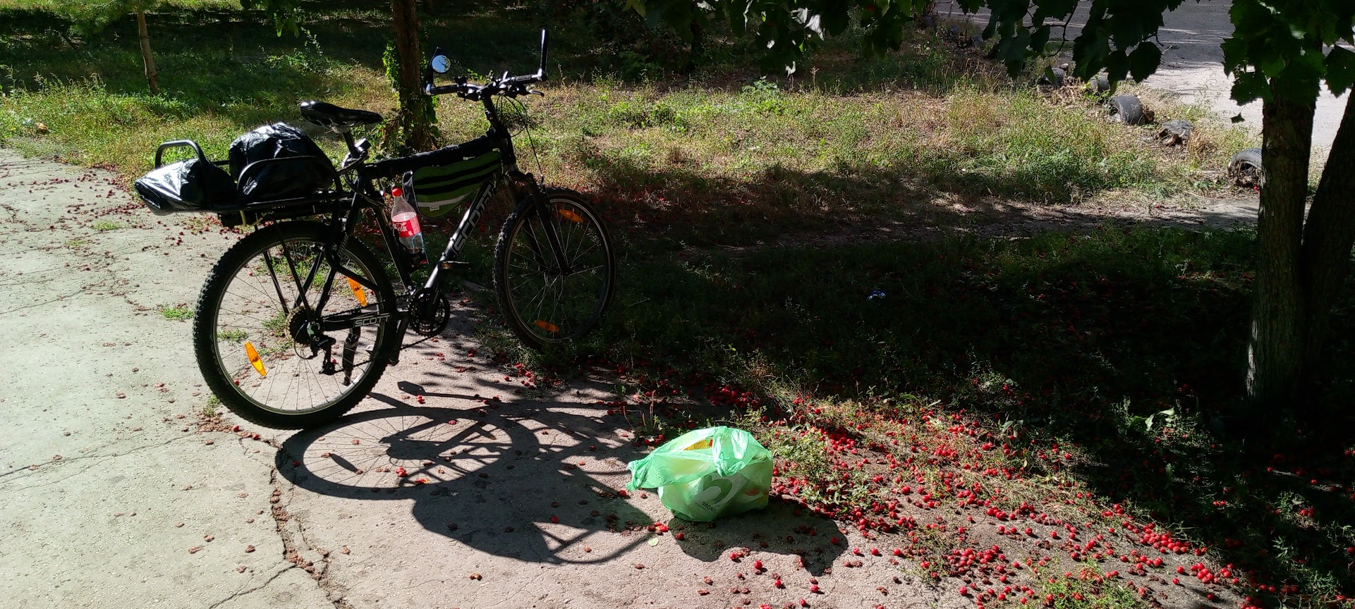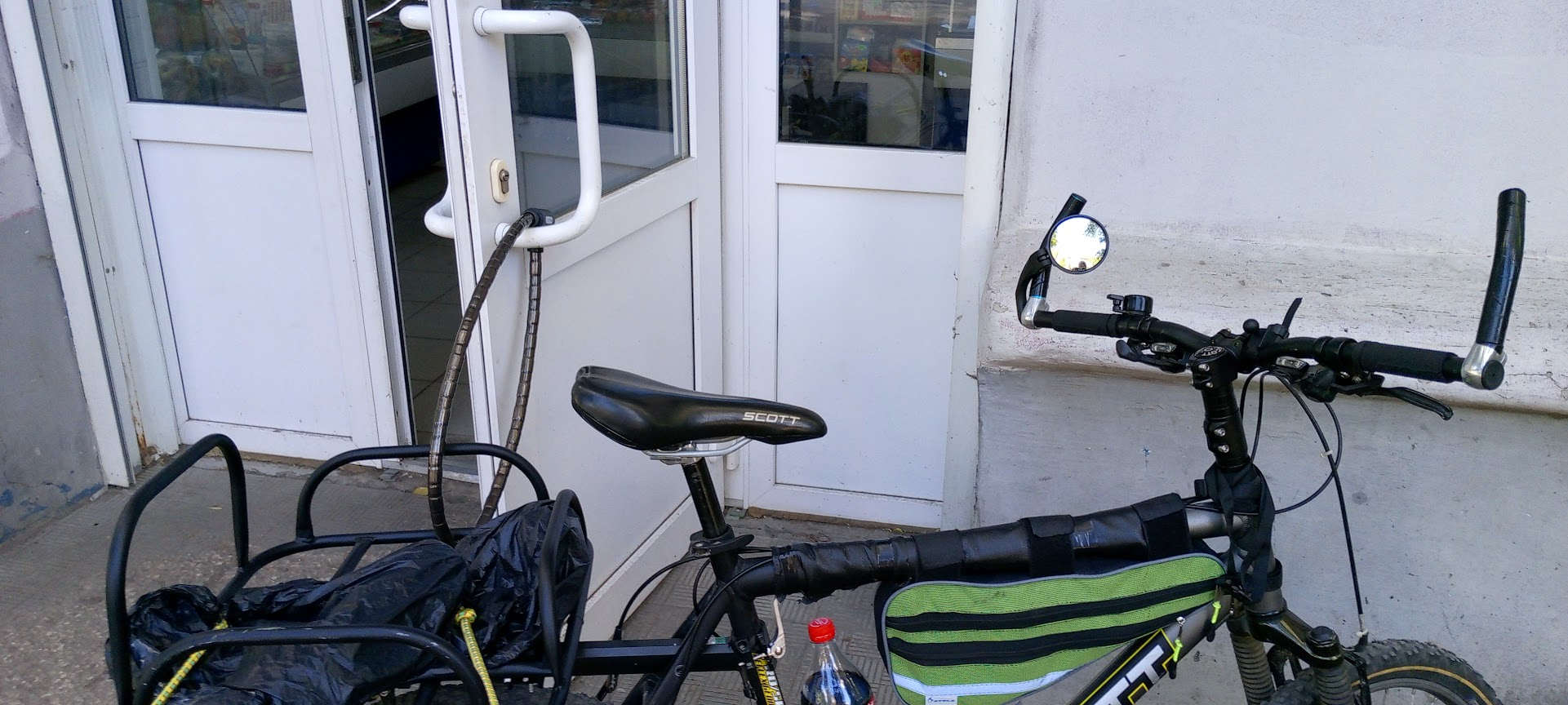 Когда мы с братишкой вышли из кафешки, я сел и поехал, а потом смотрю рога загнуты странно. Оказалось я руль развернул на 180о и пришлось тормозить в таком состоянии. Я еще падал на спину, когда пытался ногу через раму перекинуть. Багажник мешал запрыгивать как раньше. Короче, весело было