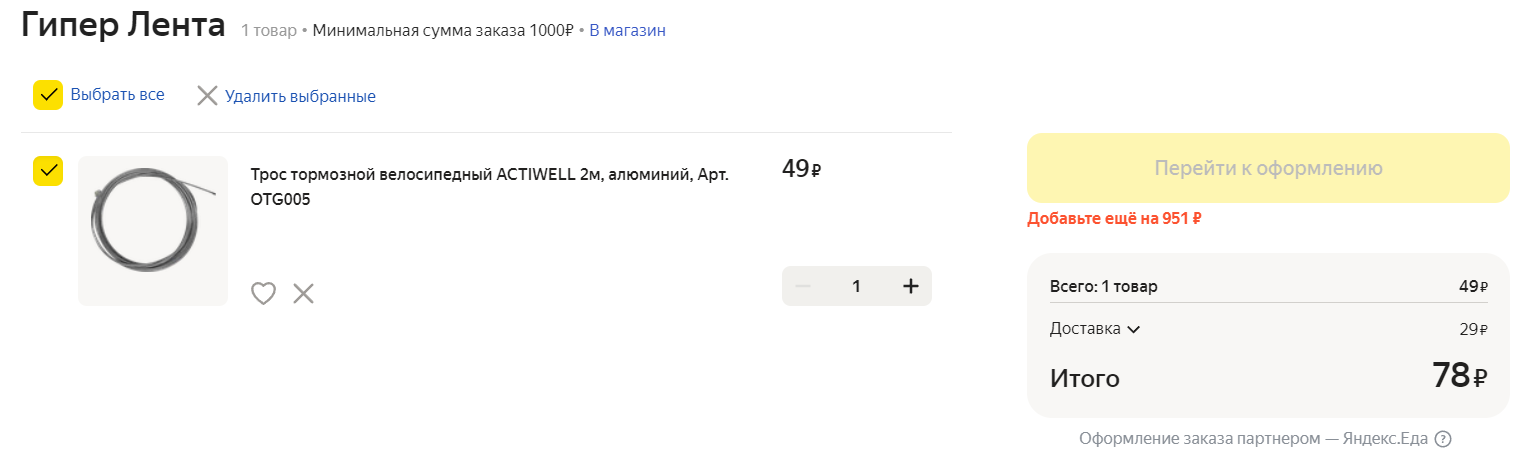 Жестко уебался об трубу. Купил вишневый штрудель. Доставил заказ из 32 позиций А еще после первого заказа подножка окончательно разболталась, пришлось ехать домой заменять ее на старую сломанную подножку