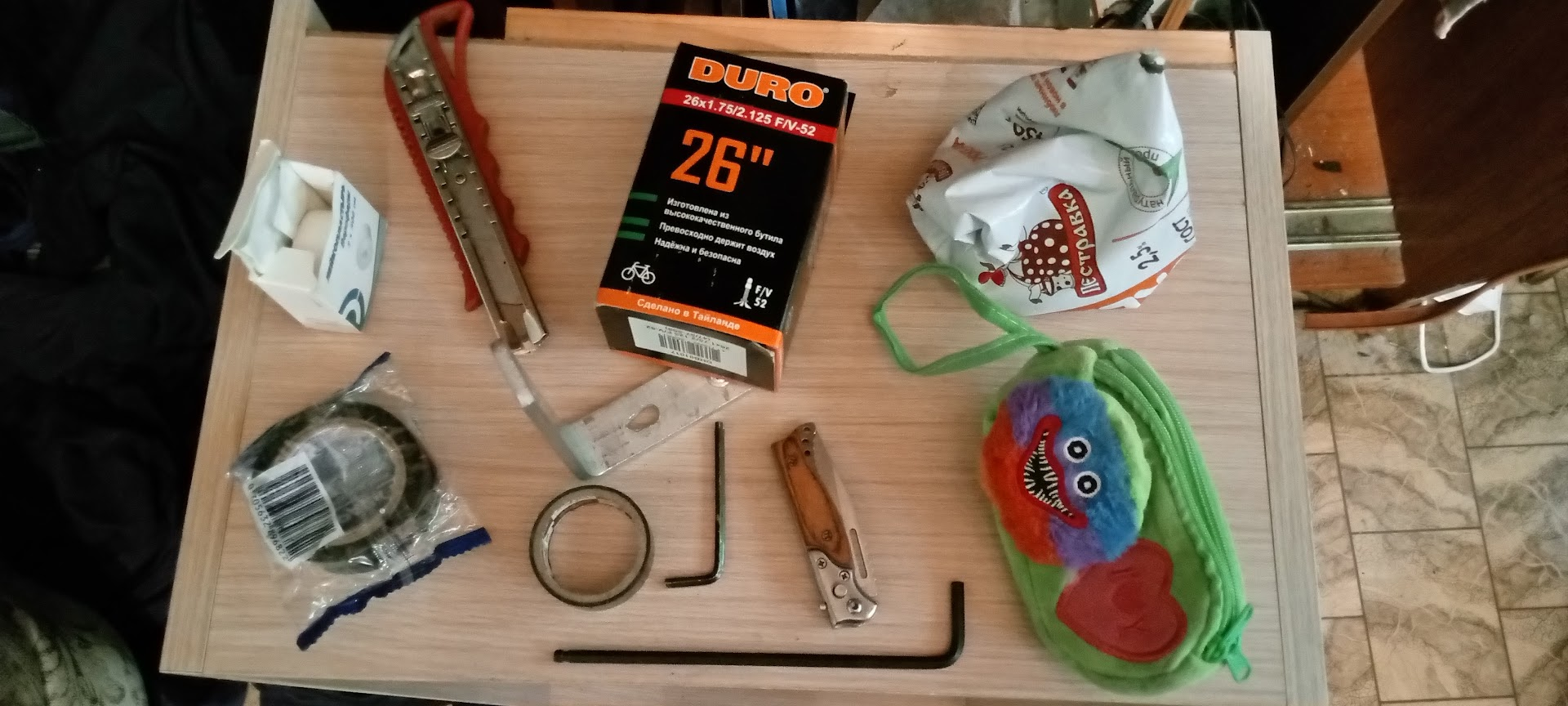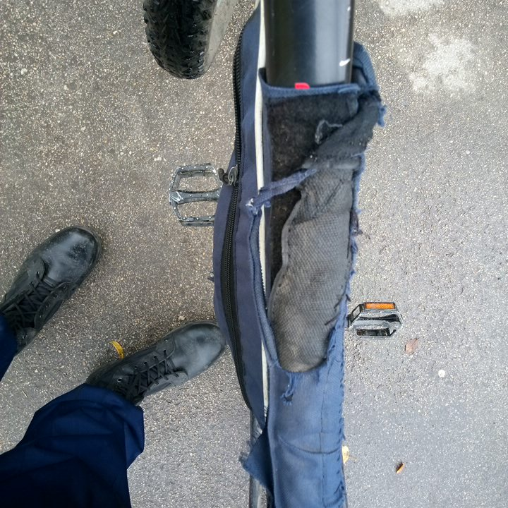 Если это большая сумка, то какая же малая. Хотел поехать на работку, но не смог найти крепеж для переднего крыла, пришлось импровизировать. А когда назад застегнул тормозной замок, тормоза естественно стали цеплять обод. Можно было бы просто отрегулировать их отверткой, но какой-то нелюдь залил болты краской, пришлось выковыривать. Тут я окончательно заебался и пошел жрать. Сегодня выходной