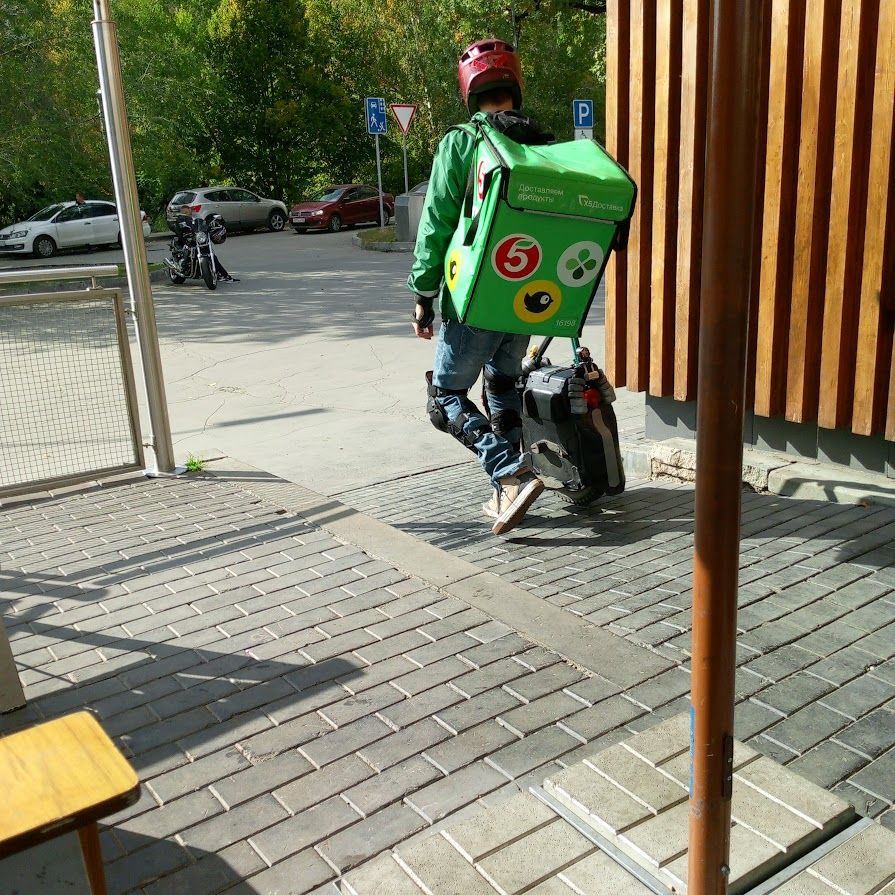 стоял у пятерочки в охотном ряду, два раза вызывал таксистов, оба слились. не смогли меня найти, я не смог найти их. каждый раз когда я вызывал такси случался фейл и я жалел об этом. дошел пешком до клиента без такси, половину груза на горб, половина на багажник и дотолкал. в следующий раз так же сделаю, если там не 15 пицц везти 4 километра в горку