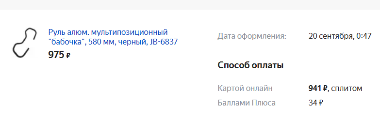 Разблокировал сплит-рассрочку в яндекс маркет, нужно было оплатить один неоплаченный заказ, который карта не осилила. Заказал легендарный руль барашек. Теперь ждать