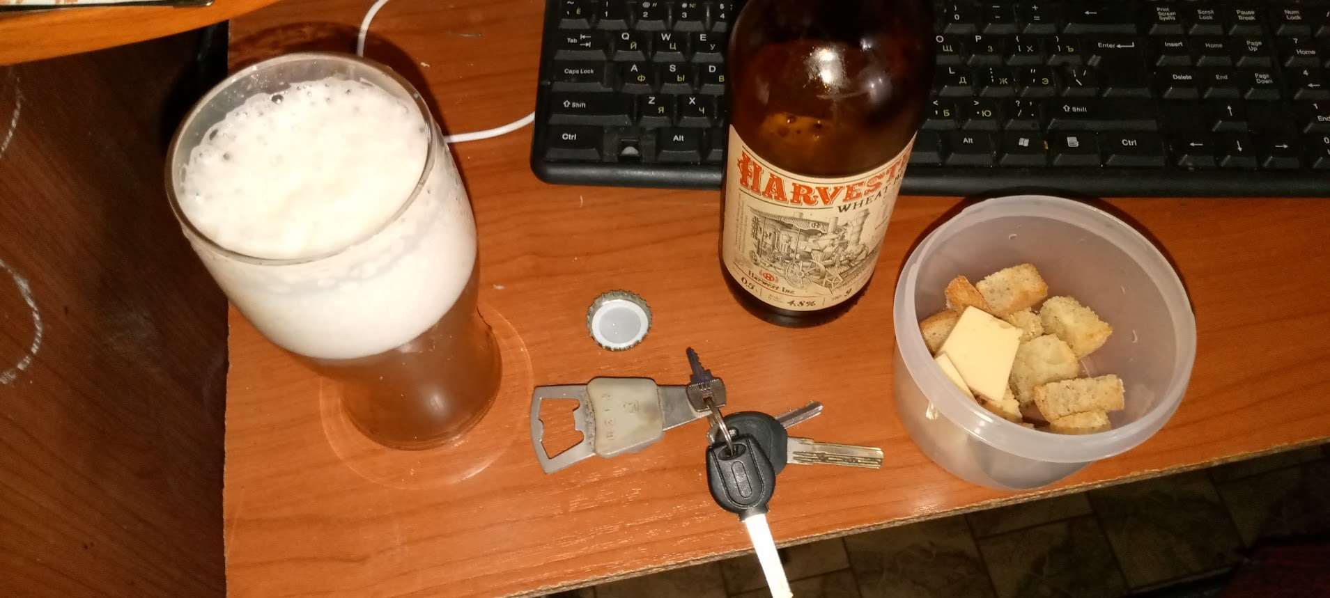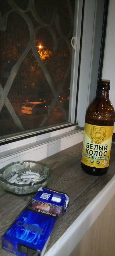 Пожрал жареной картохи, потянуло на пиво. Не зассал выйти в новых очках. Ввиду кризиса взял такое за 75. Не скажу что он пиздатое и каждому надо попробовать, но мне зашло. Когда шел назад зазвонили колокола в местной церквушке. Черная собака принялась истошно подвывать задрав голову вверх. Причем выла на полную катушку в религиозном экстазе.
