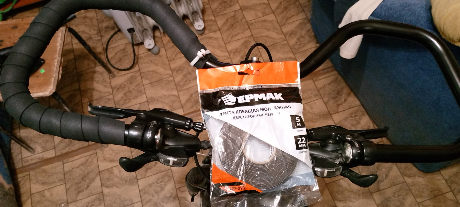 Поставил рога на руль, поменял звонок, купил лопатки для снятия покрышки. Рога нихуя не удобные, держать их надо так же крепко, каждую минуту надо снимать руку и тянуться к тормазу. Но, когда я приехал к магазу, локти уже ныли. Они поднывали еще час, пока я катался в поисках хомута. Зато, благодаря рогам задействованы другие мышцы и суставы. Я смог выпрямиться. Дома уже не чувствовал этот ревматизм, руки не тряслись.