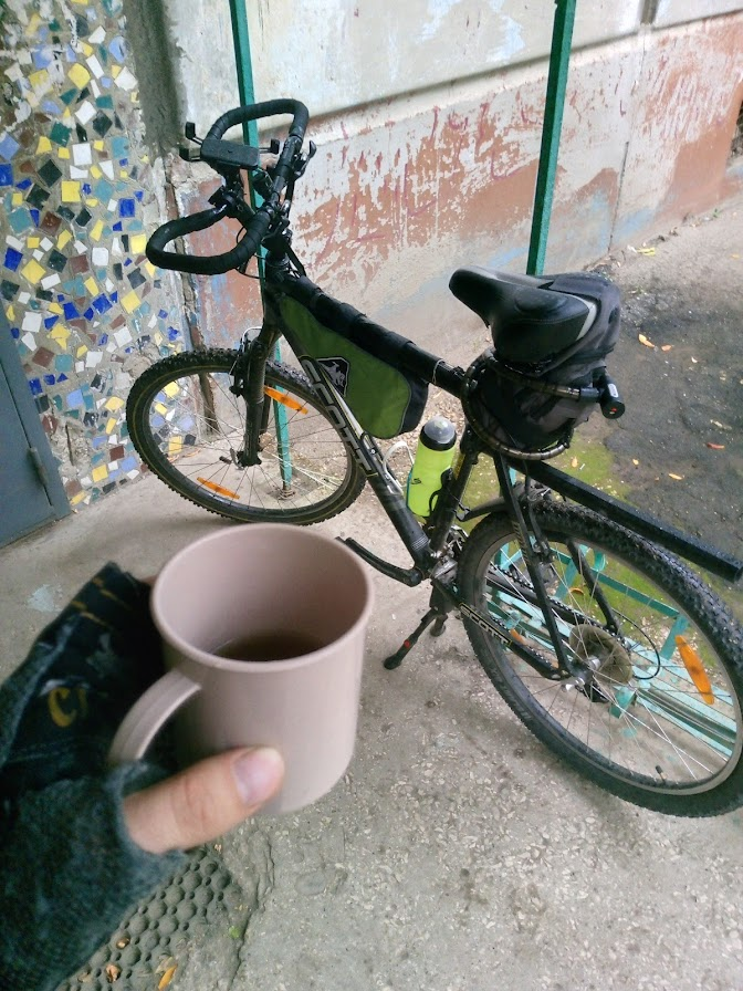 Из достижений: Перешел подземный переход с великом в руках. Чуть не сбил бабку, когда держался за рога. Попал под дождик.