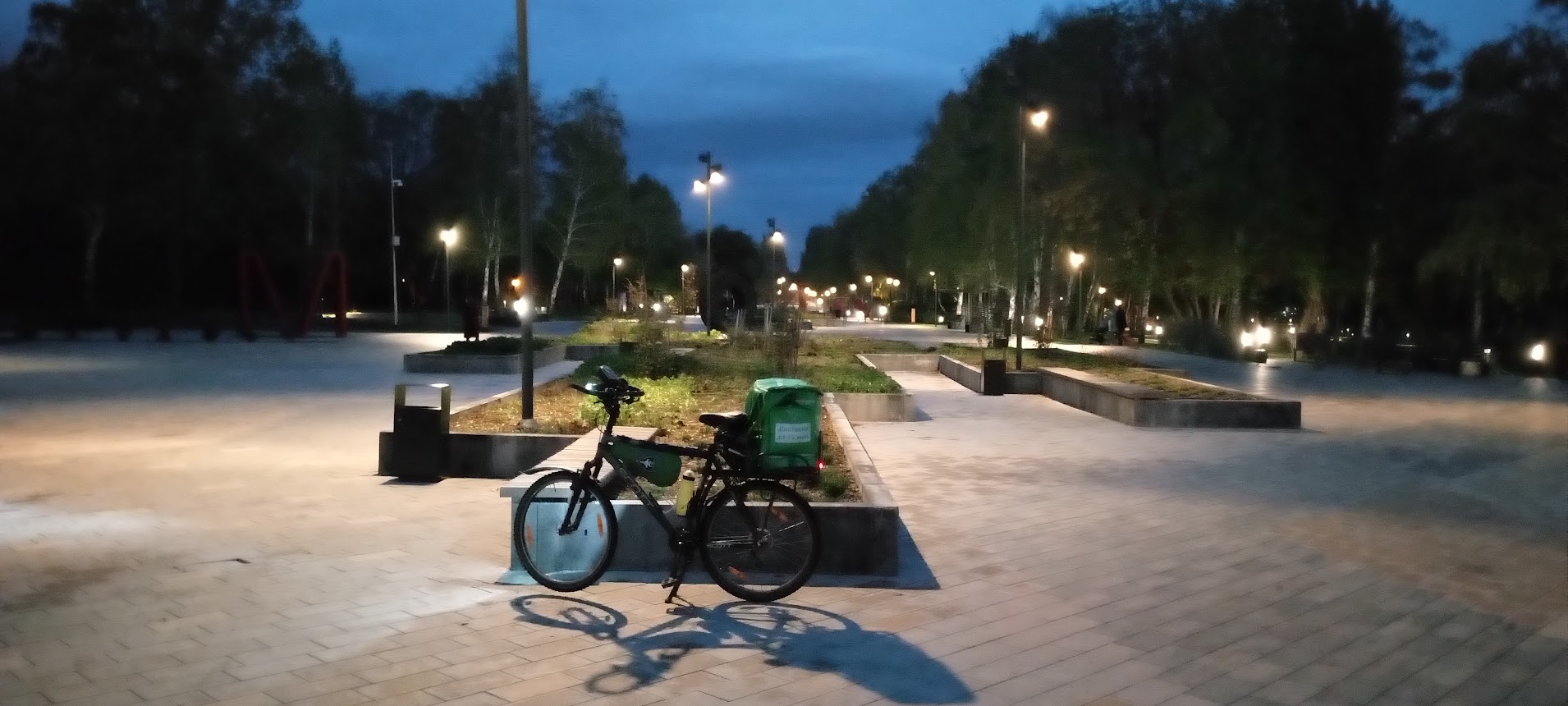 Купил фанарик и поехал развозить всякое дерьмо. Специально работал допоздна чтоб его потестить, все работает отлично. Из достижений: потратил всего три рубля на воду. И тыщу на фанарик с ключом для настройки спиц, но это для работы. Уронил телефон с высоты более метра. Уронил термокороб, но сделал это осознано, все было под контролем. В общем я пришел к выводу что курьерскую сумку можно просто ставить в багажник и ехать не боясь что он вывалиться. Правда я слишком дерзко и неудачно пытался сигануть через поребрик, от чего он вывалился. Но там пара бургеров в пакете и приземлилась она на жопку. Дохера тупил как всегда, один раз оставил ключ рядом с припаркованным велом. Или потерял трос-резинку, хотел уехать, но потом вернулся и нашел. Наснимал видосов но там камера трясется и еду с черепашьей скоростью, смотреть не начто