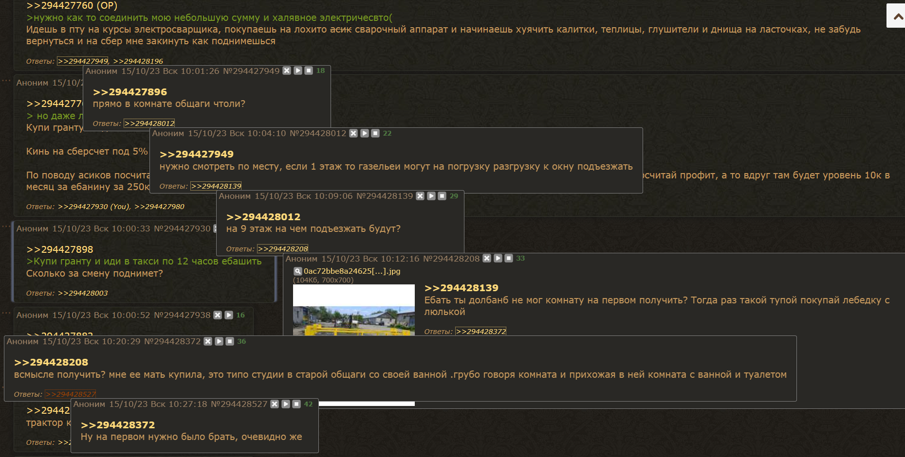 >>717457 >ты уже известен на весь велач Практически не бываю там > дневникач Мертвый тред. У меня до этого тут пара тредов были такие же мертвые >в бэ Там банят за политоту. >Почему не хочешь идти дальше? Моя жизнь банальна и скучна. Множество таких курьеров снимали кинцо про свою работу, но я с ними даже близко не стоял. Ну вот у меня разбился новый термос. Я предполагал что так и будет, хз зачем его брал. Сегодня отнес назад в магаз, мне дали бумажку чтоб я написал претензию, но пока писали бабка глянула внутрь там одни осколки. Говорит можешь ниче не писать, хуй тебе а не возврат. Интересно? Сейчас сюда прибежит анонимный долбоеб, которого я обоссал в велаче и начнет тявкать. Не о чем рассказывать пока ничего не добился