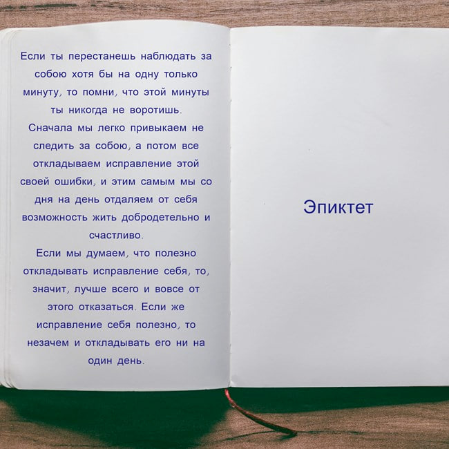 Наверное поэтому Эпиктет и настаивает на ведении дневника, да и не только он. Это не самая трудная в исполнении привычка, но она, вместе с медитацией, должна служить напоминанием о том, какого пути я вообще придерживаюсь, и в горе и в радости так сказать.