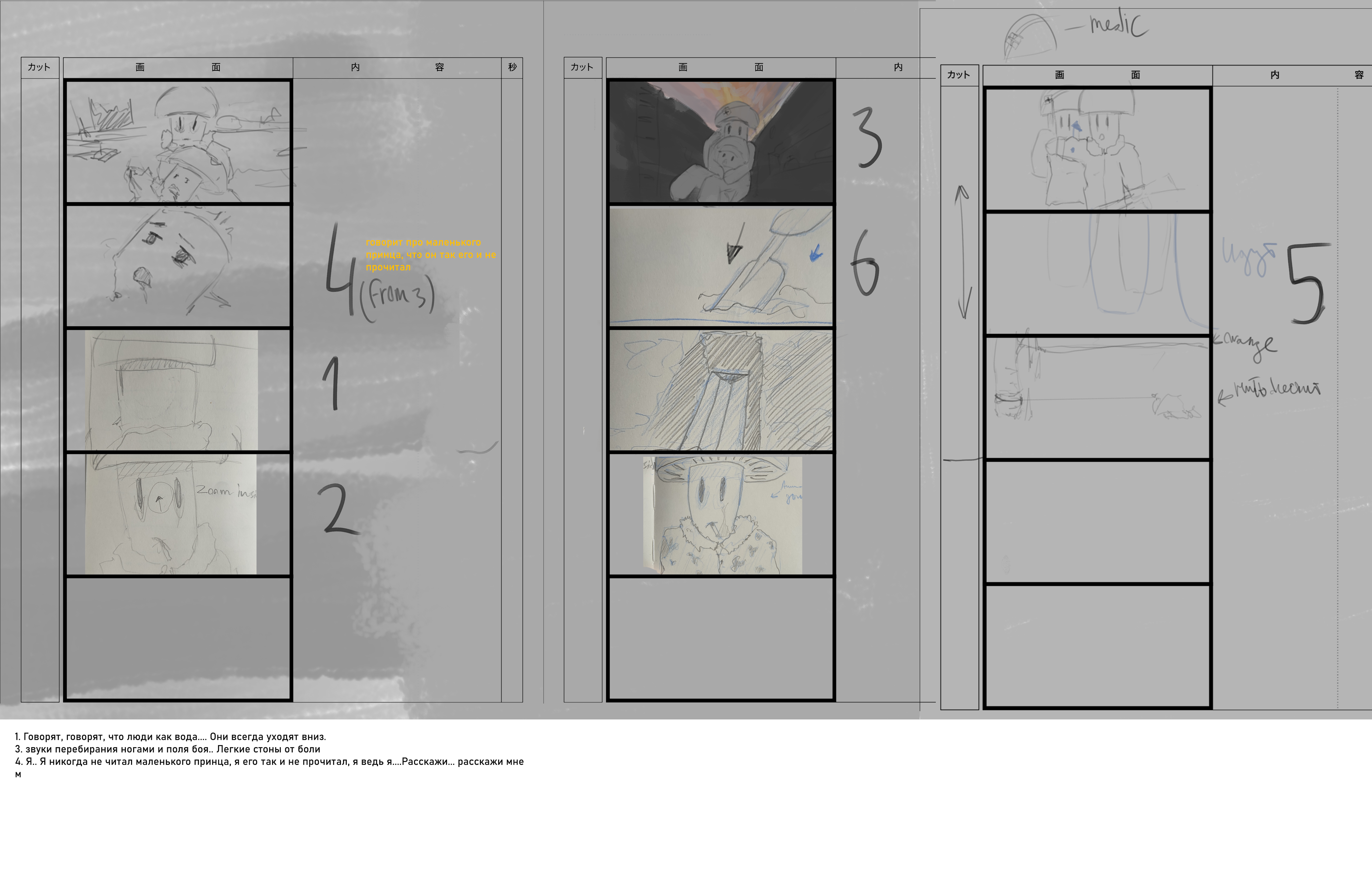 Прошлым вечером осознал, что тупить в ванной под душем, смотря вниз, очень полезно для раздумий. Мысли сами идут в голову. Подумал, что нужно провести параллель между фразой "люди как вода - всегда тянутся вниз" и грибницей, словно вся планета - это одна большая грибница. В сцене, где будет могила, придумал нарисовать черные руки, которые извиваются как трава на ветру, возможно они чуть выступают из могилы как березки.